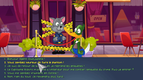 The pilot episode of a likely long series of police investigations. Take control of an unlikely duo consisting of Inspector Magret, a refined duck and Inspector FaceDeBouc a devilishly contrasting goat. Help them solve the mystery of the murder of Mr. Couane, a local merchant found dead in the city.