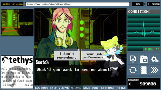 Model Employee is a corporate horror visual novel where players take control of the latest individual amongst millions to start working in one of Tethys' online shopping labyrinthine warehouses. Just discharged from the hospital and massively in debt for their life-saving cybernetics, the player-character must adapt to the "extreme" work-life balance of a Tethys Team Member- but they have help. Penny, the artificial personality that controls all security, waste disposal, and employee surveillance in the facility, specializes in reinforcing an especially cutthroat variety of workplace culture- and she's taken an interest in you. With a vibrant cast, PC-98 inspired visuals and multiple endings, Model Employee is a modern horror story that'll stick with you long after you've clocked out of your shift. If you want to get ahead in your career, you gotta be willing to take some risks.