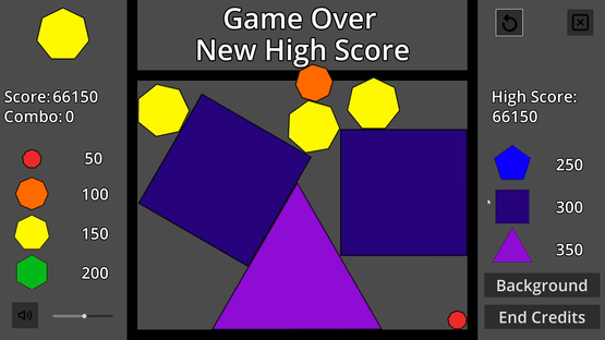 Drop matching shapes on each other to create larger shapes. The more shapes you combine in one drop the higher your combo score. The game ends when you run out of space.