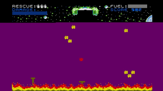 In the year 2070, the Earth's energy resources are not sufficient for the great demand of a booming overpopulation; new technologies and materials have allowed the extraction of energy in the upper layers of Jupiter's atmosphere. From time to time, accidents occur in the mining-energy complexes that exist around the planet. Your mission is to rescue the miners if necessary. Control the descent of your ship, avoiding the clouds of overheated plasma, to land on the platforms and collect the capsules to take them to the space station. This game has a basic concept, it is made in Basic 1.0 with additions of machine subroutines, it consists of 5 levels and has an ending.