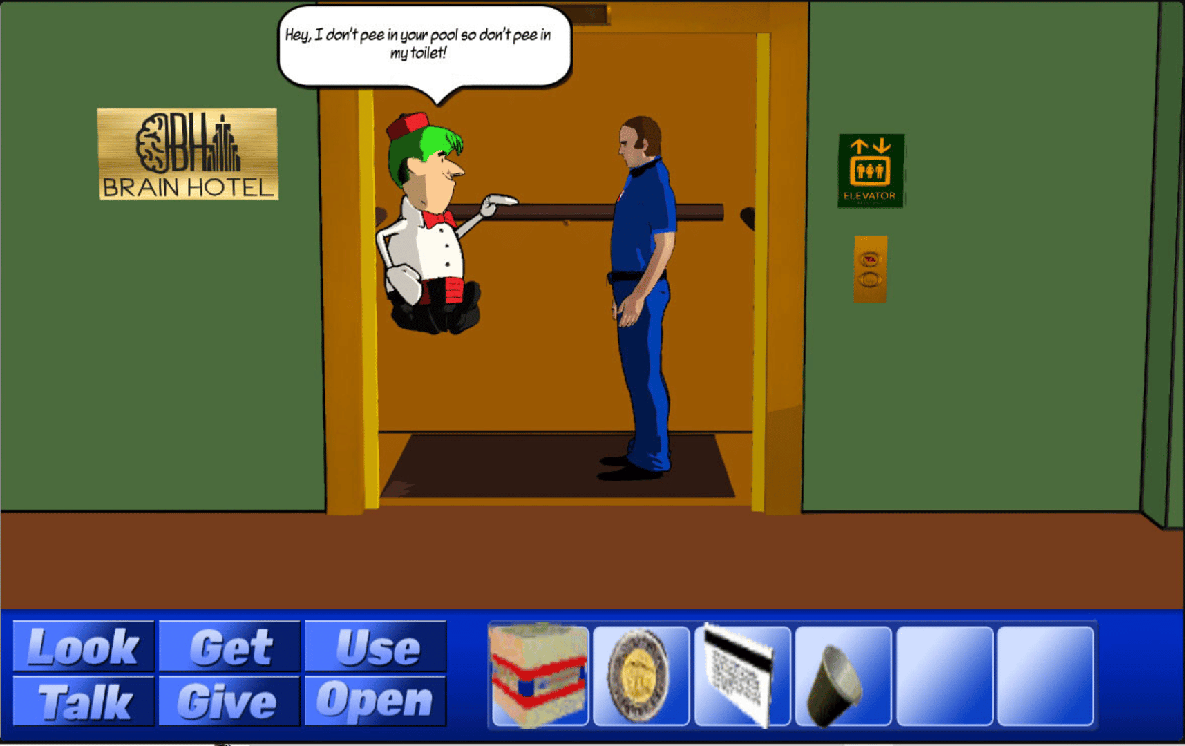 A comic book-inspired point-and-click adventure game. You play as delivery man, Ed Arnold, who has the misfortune of delivering a package to the Brain Hotel on the eve of their annual super-villain convention. Brain Hotel: Remodeled is a complete remake of the original 2004 Flash-based game, updated to take advantage of modern technology.