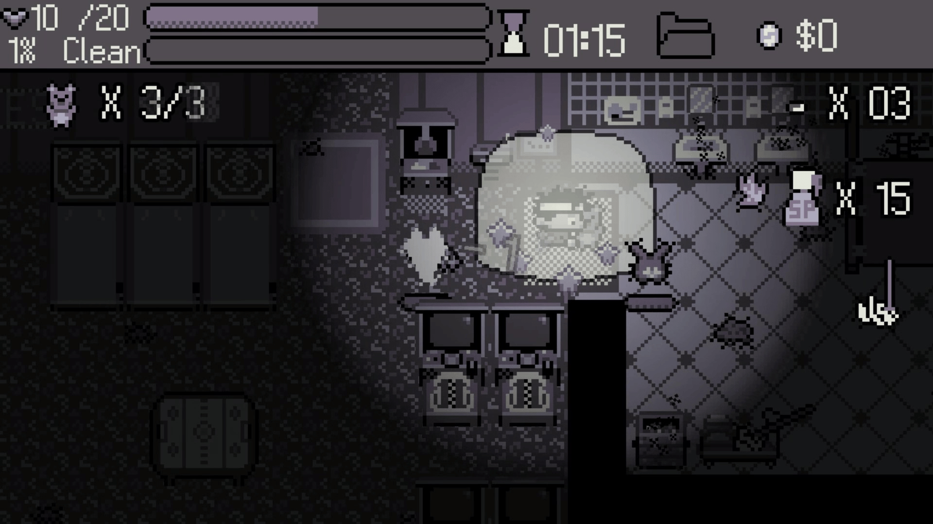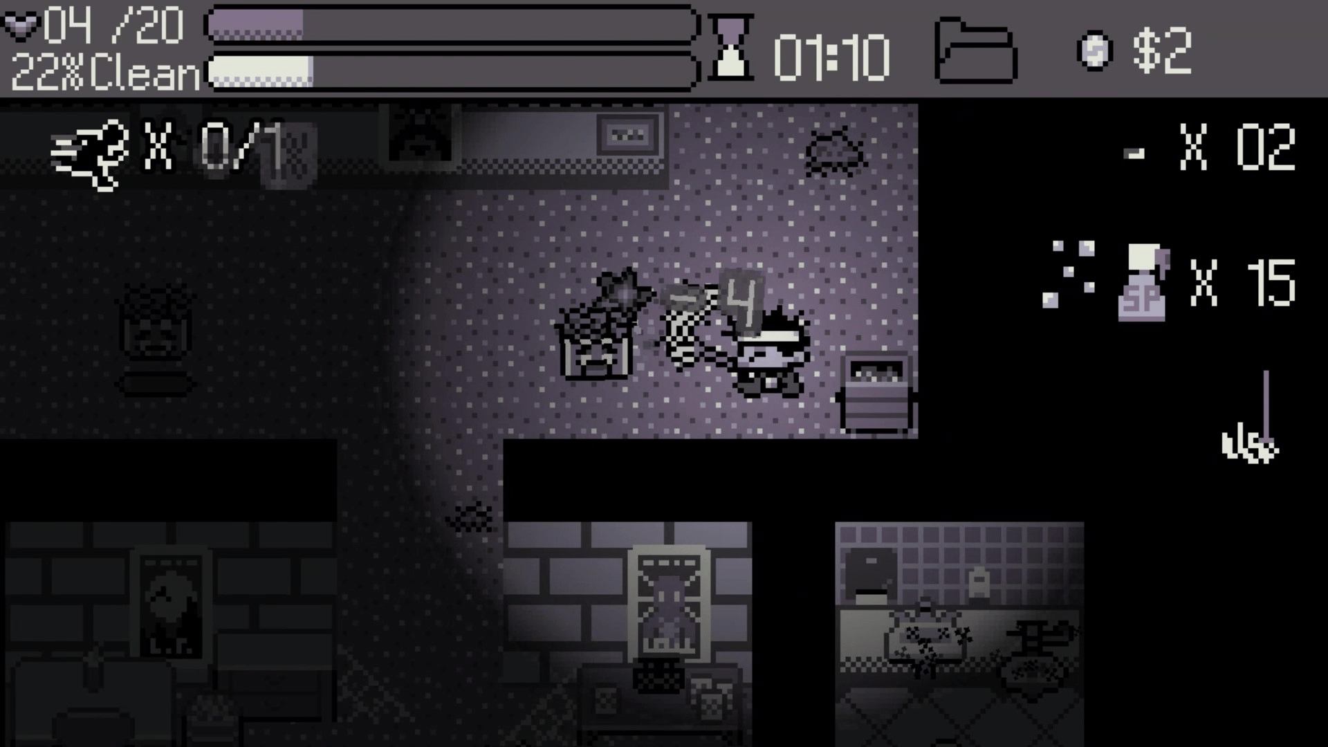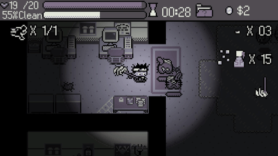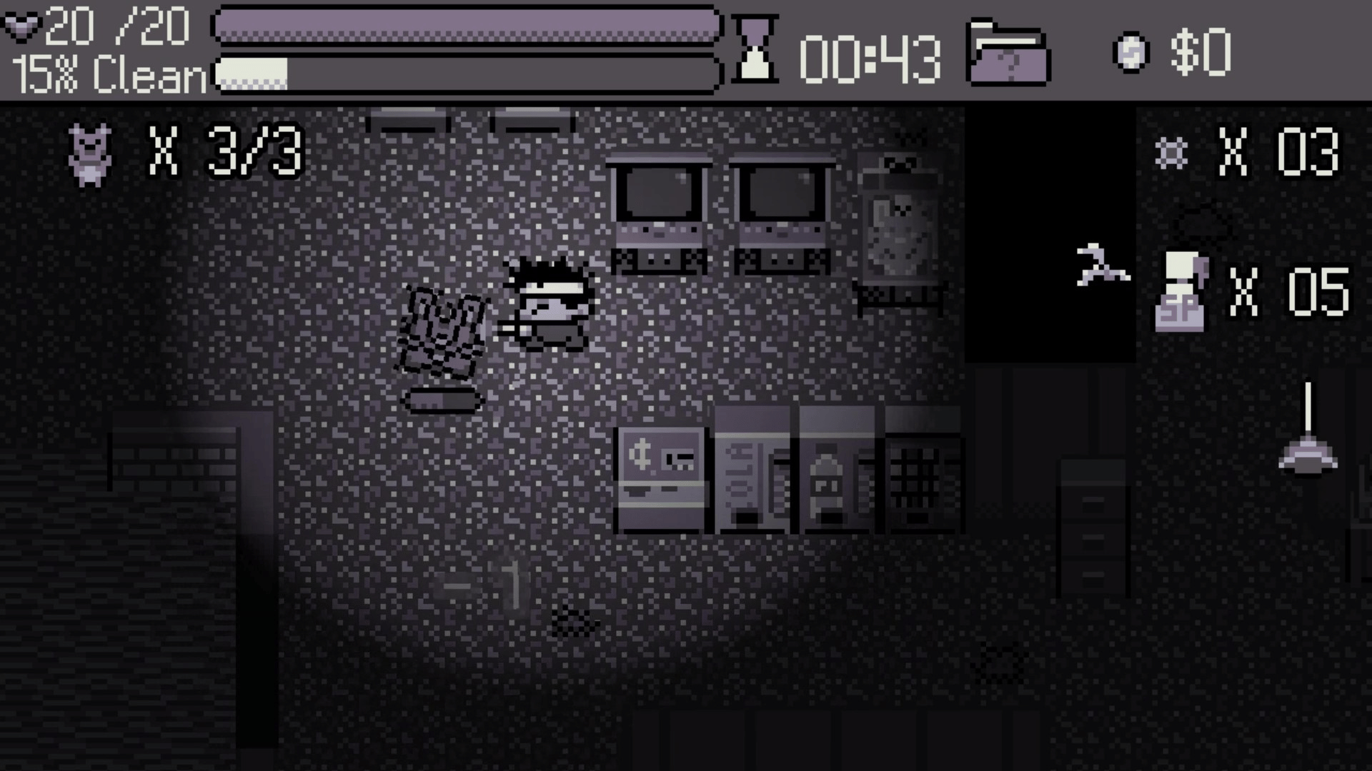 Clean, Clash, and Collect across the crummiest corners of this Single-Player Rogue-Lite. Spend your meager earnings wisely on both permanent and temporary upgrades, so that even the thriving haunts of cute and creepy creatures can’t stop you from cleaning until everything is Spotless!