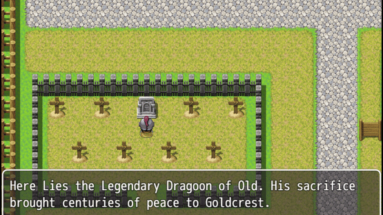 Path of Dragoon is a Fantasy RPG that is inspired by Dragon Warrior and Final Fantasy. When not completing the Main Quest, you can restore the Kingdom by completing quests for villagers. You can Mine, Fish, and Explore the world to discover powerful items and abilities.