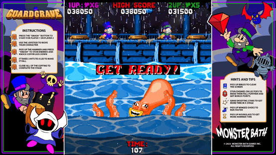 GuardGrave is an old school styled game in the vein of BurgerTime. Players must close the coffins on each stage before the sun comes up. 7 Worlds, 7 Bosses and 37 Stages of co-op monster bashing mayhem!