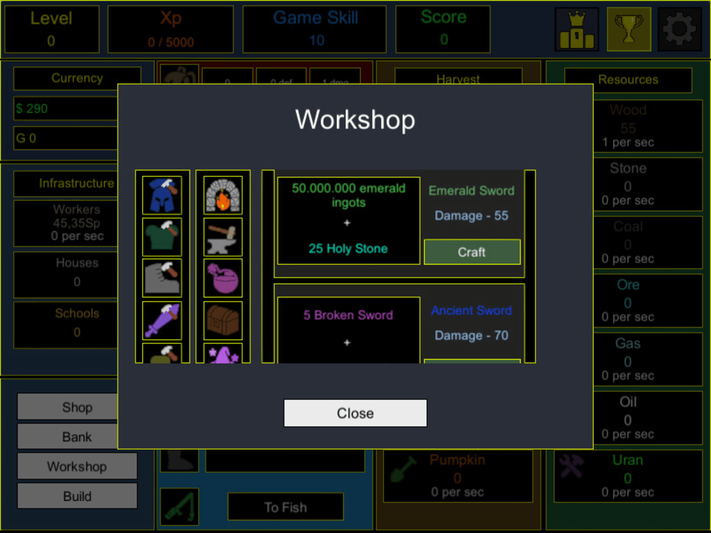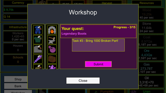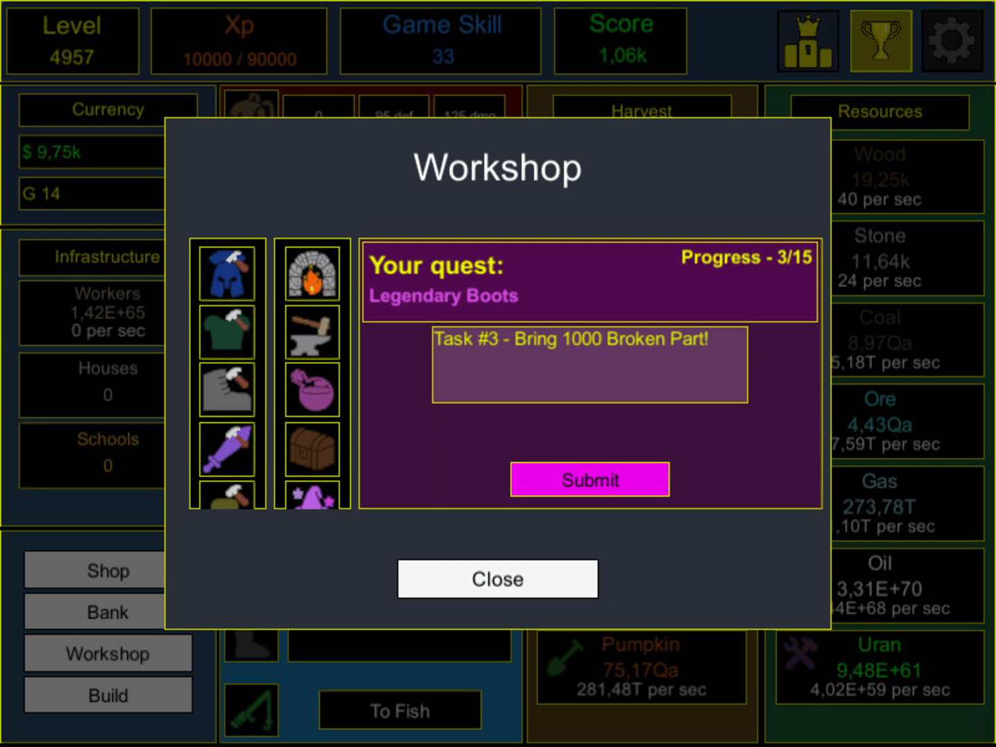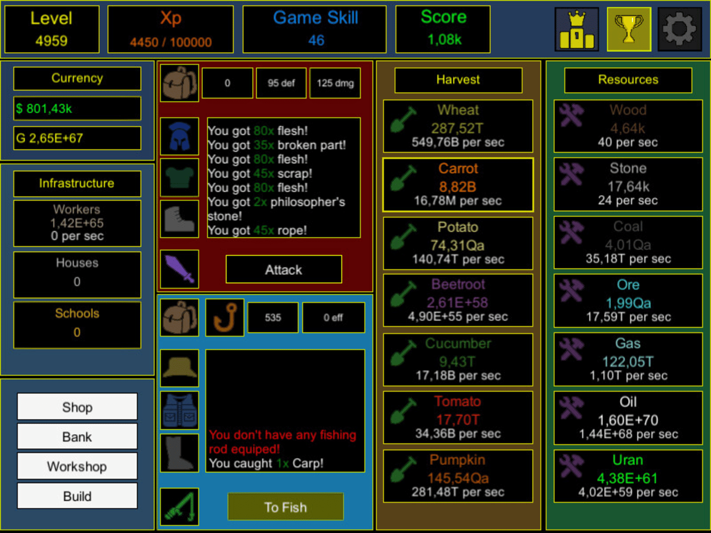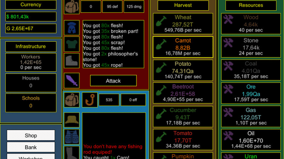 Idle Progress - A free idle game where your task is to produce as many resources as possible, improve your weapons and armor for good attacks, create good fishing rods for a good catch and get legendary items by completing legendary quests.