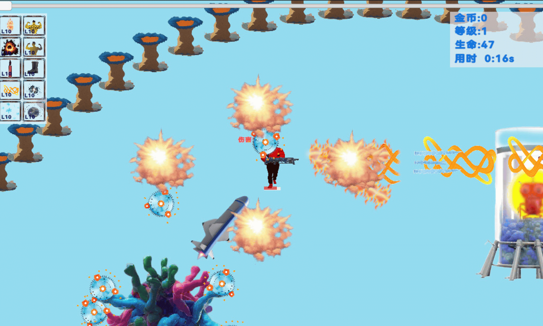 A casual game of meat pigeons Dealing different damage to enemies through different skill combinations.