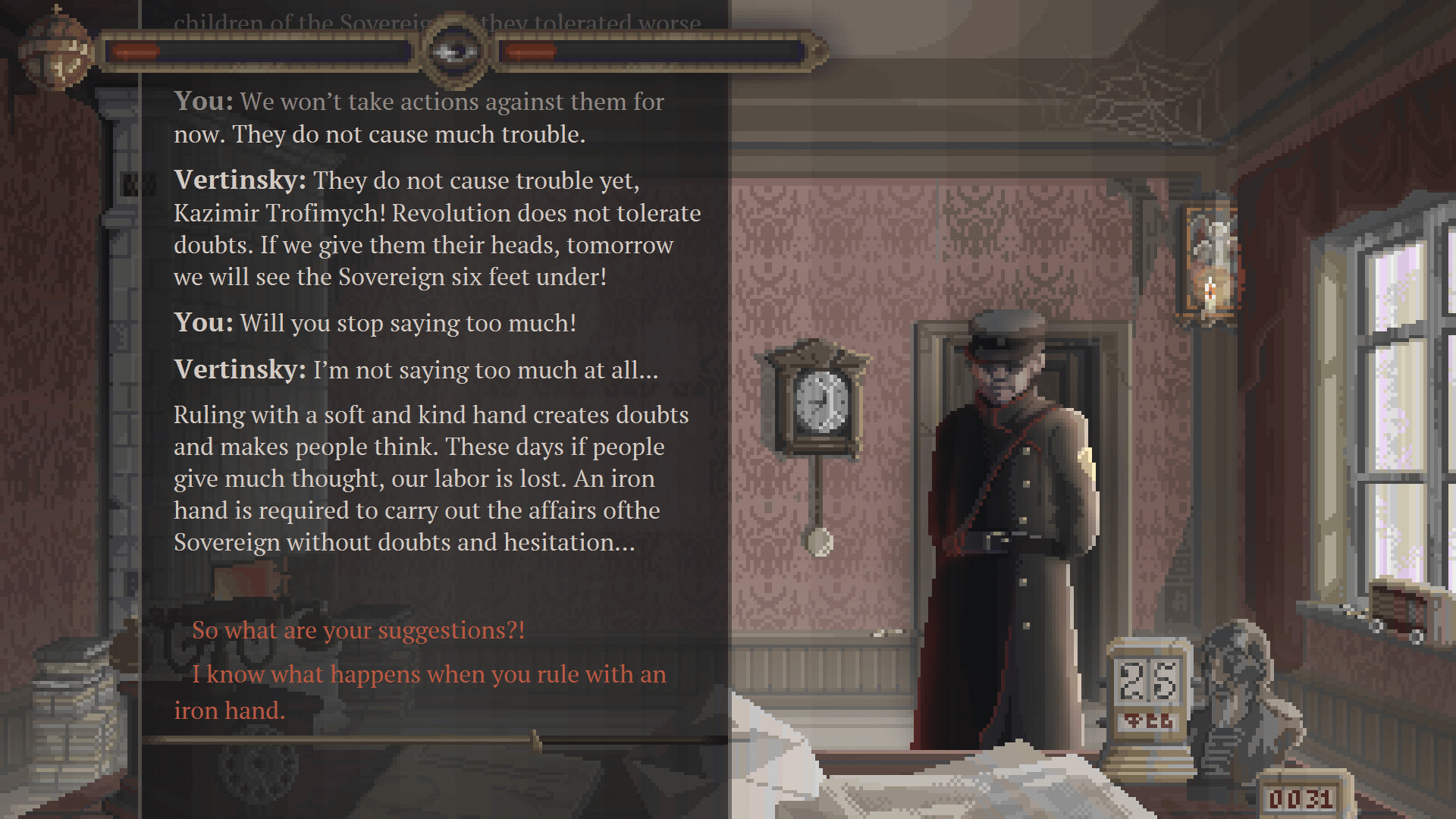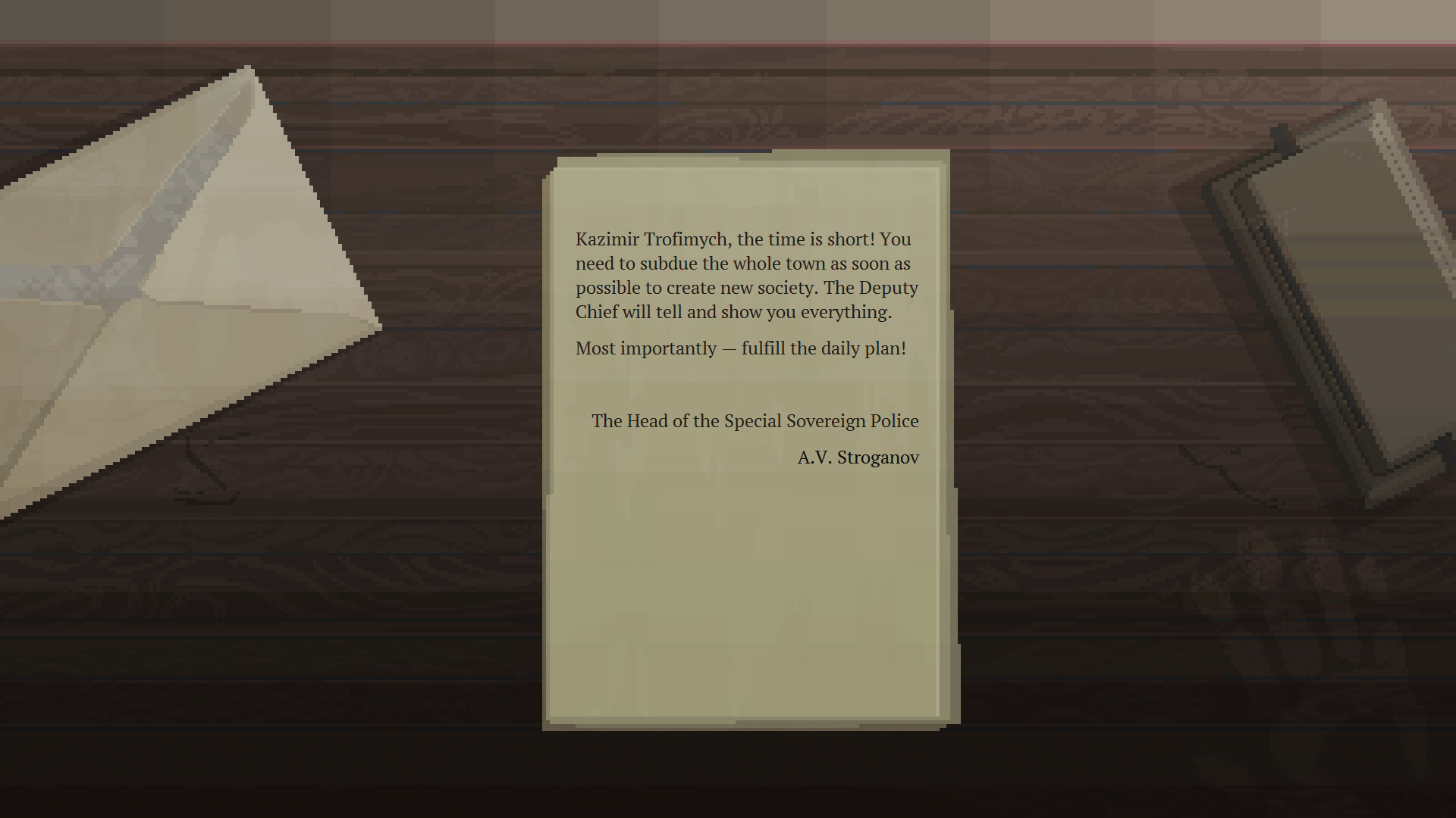 Plowing is a point and click simulation game, where you have to subdue the whole town in 13 days to establish order. Shoot. Imprison. Pardon. Hear the visitors out. Keep track of time. But most importantly — keep calm…