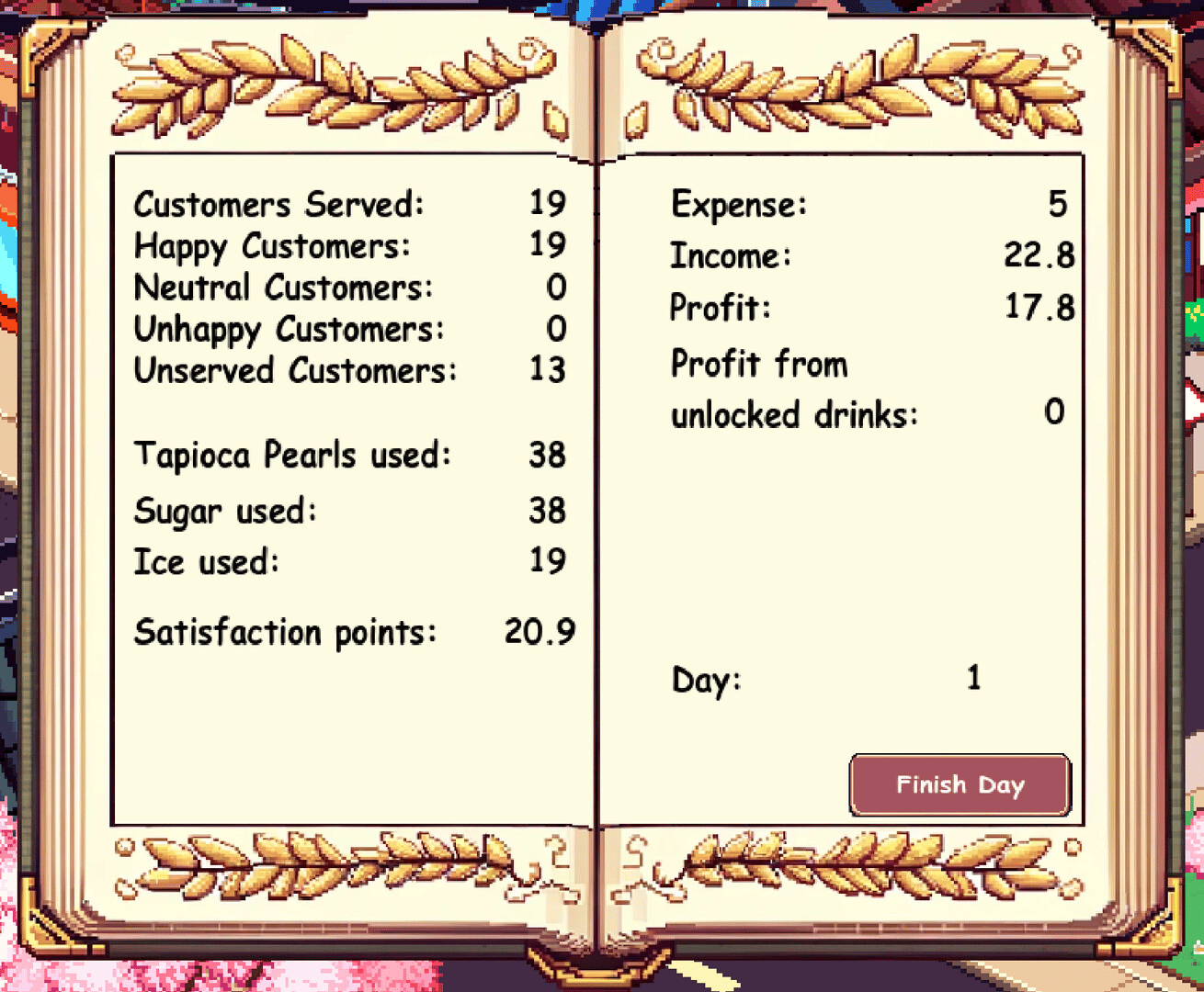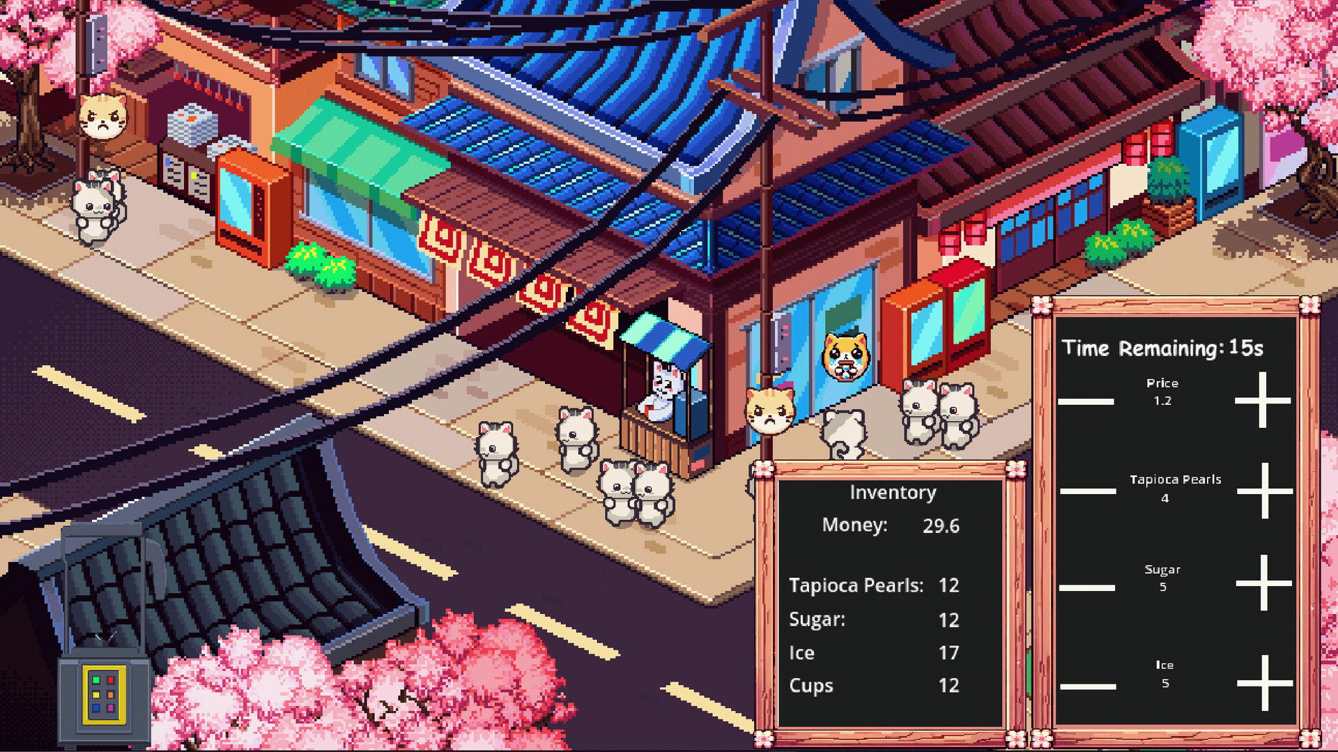 Boba Bar: Bubble Tea Tycoon is a Kawaii themed pixel art game where you start your journey with a humble drink stand. Learn new recipes and unlock new equipment and locations, manage sales prices and inventory in order to succeed in becoming the largest bubble tea tycoon in town!