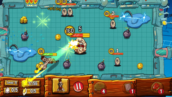 Aim and shoot game with an angry rooster in the main role. Play the role of an angry bodybuilding rooster and collect all yolks from the super eggs to become an arm wrestling champion.