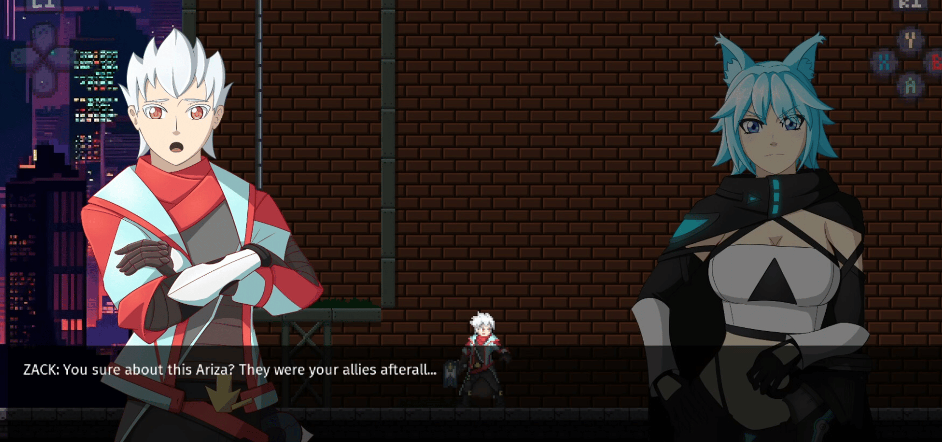 Bend time and space in this story-driven 2D platformer with branching story paths and converging timelines! Heavily inspired by the Mega Man Zero Series and Azure Striker Gunvolt Series.