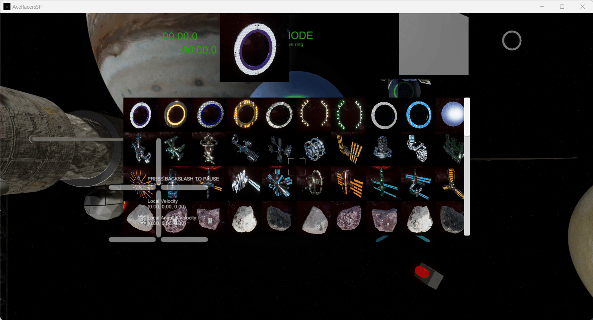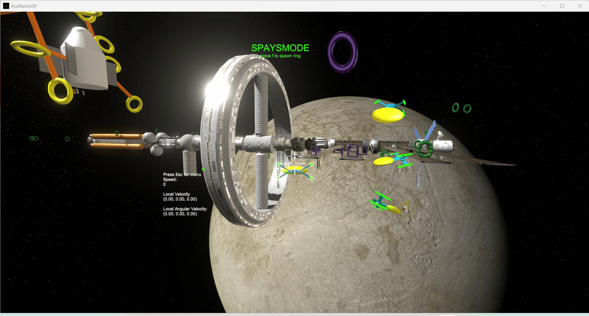 Import, build, and export arena courses for space drone racing. Customize your ships thrust and rates, and work on your manual thrust skills.