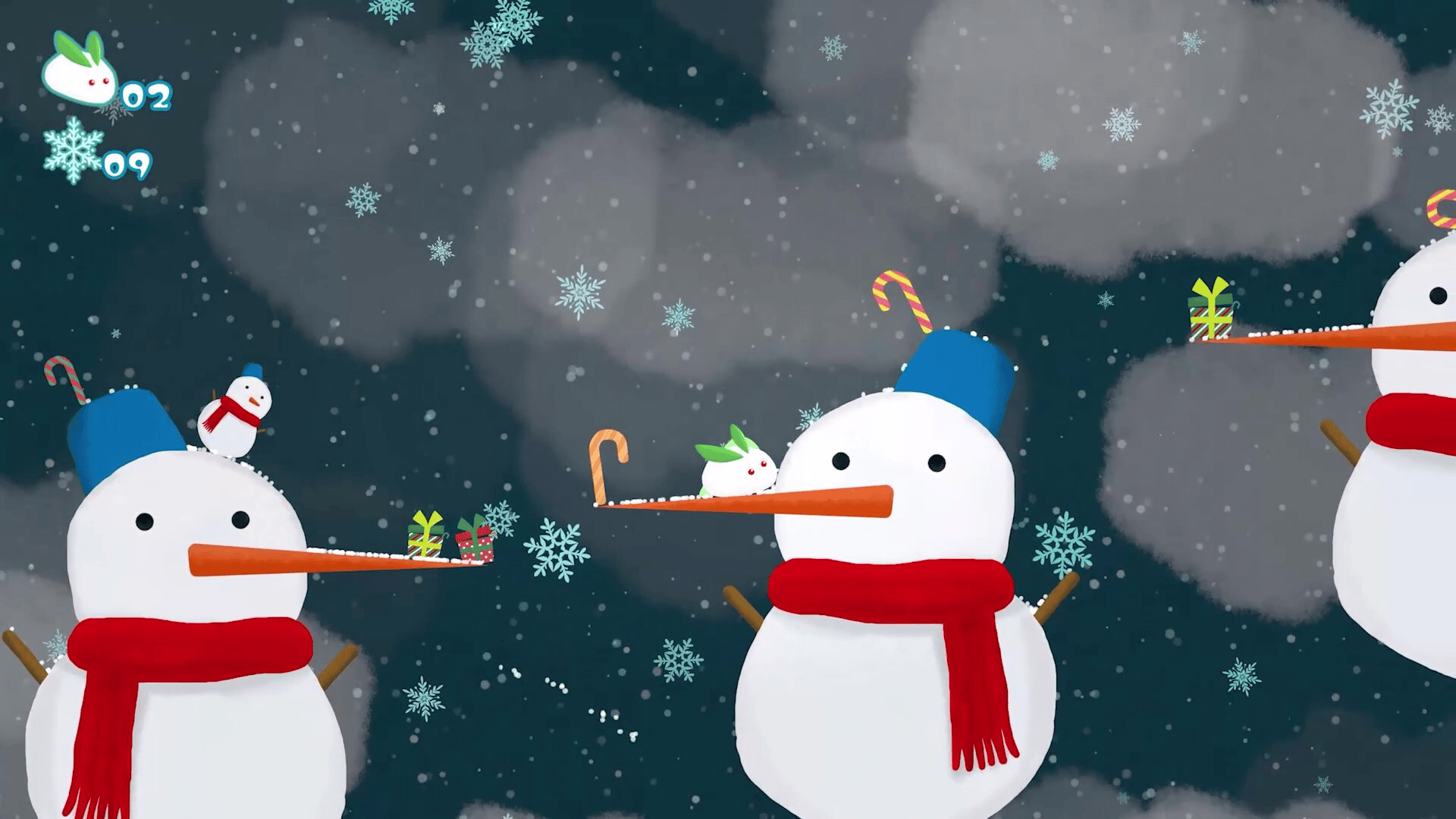 A game of bouncing snow rabbits!