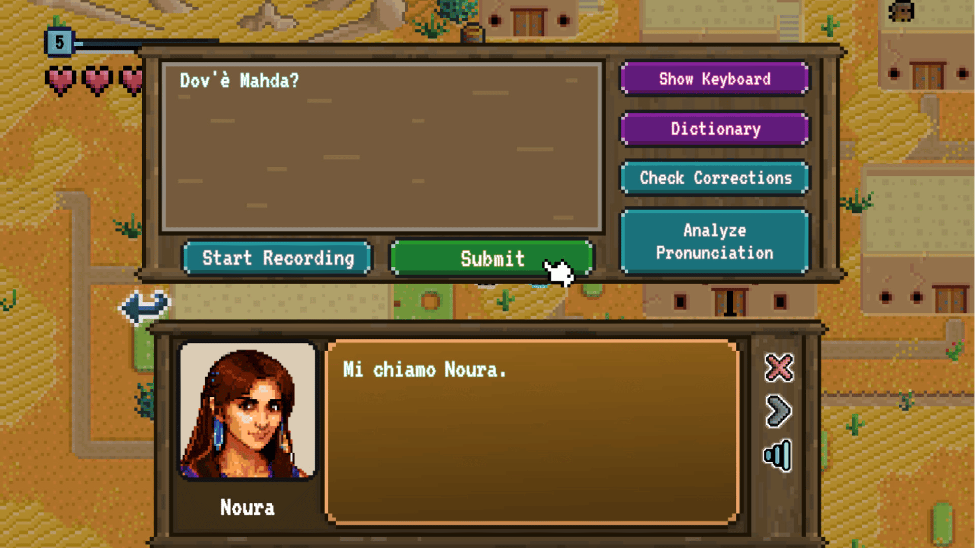 A fantasy language learning adventure for intermediate language learners. Practice and improve your ability to speak in your target language to save the the kingdom and befriend its people!