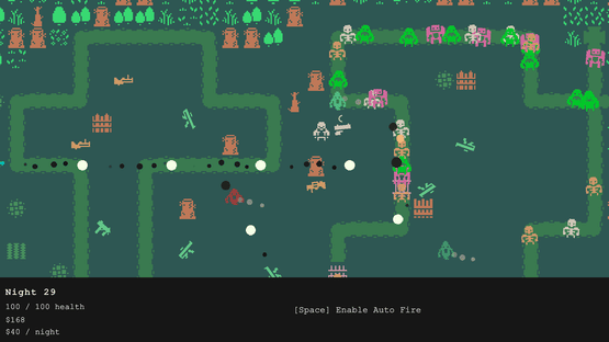 36 Nights is a tower defense game with roguelike and bullet heaven elements. Buy turrets and upgrade your survivor to defend against waves of zombies. You'll need careful strategy and a little luck if you want to survive 36 nights...