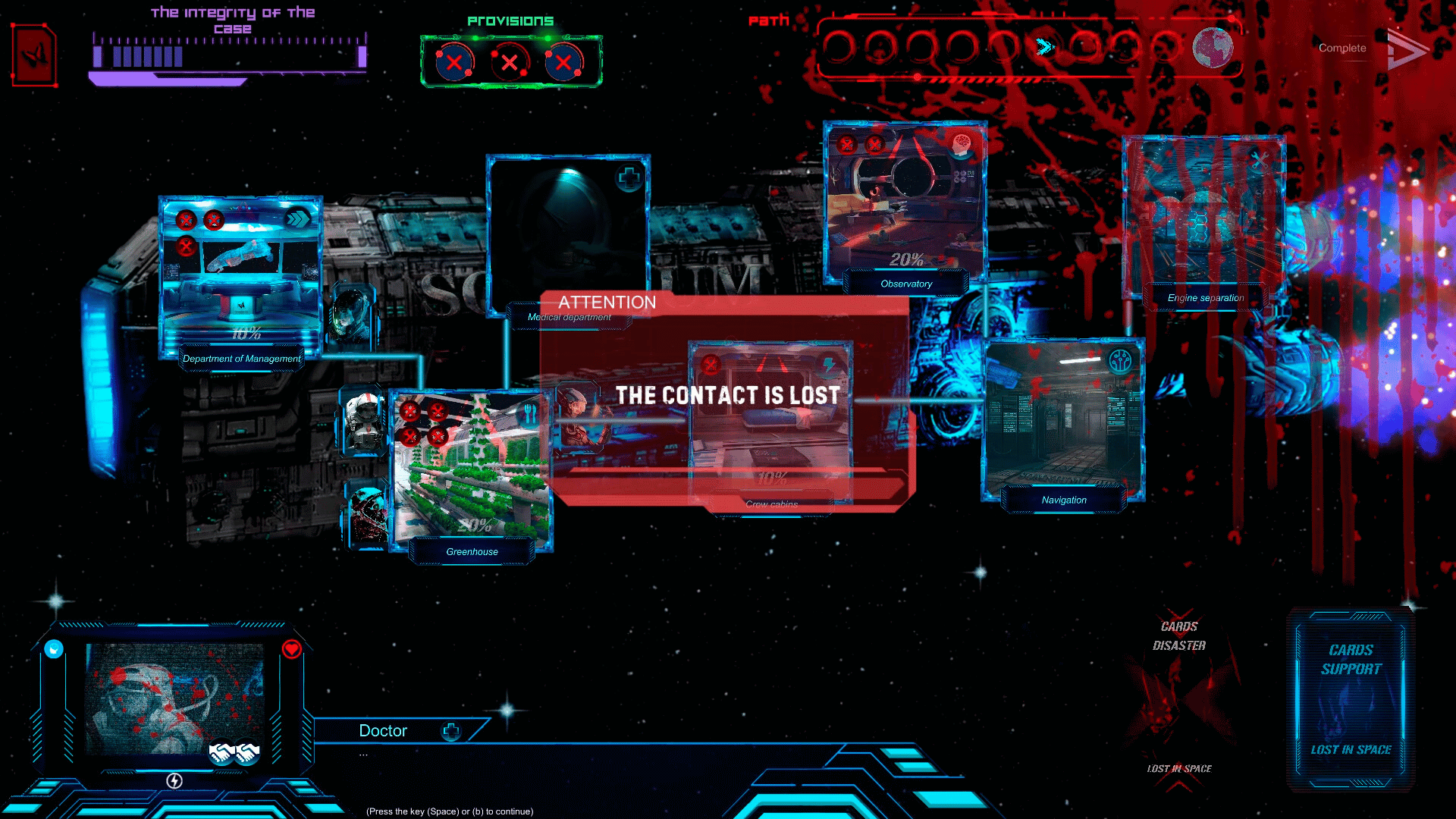 A sci-fi turn-based card strategy game in which you must guide your team of astronauts through horror, food shortages while maintaining their sanity, and uncover the mystery of the mission.