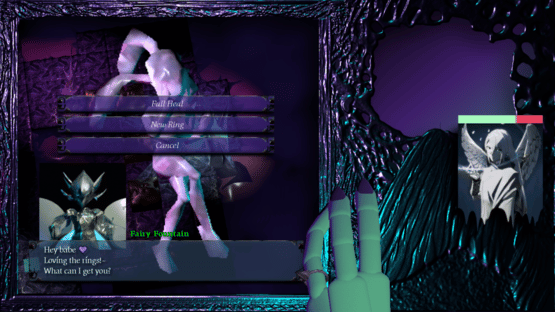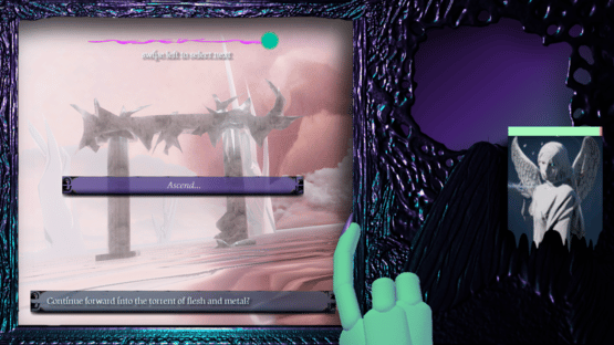 Turn based dungeon crawling with ring-based combat -- interrupted by hot visual novel action. Cursed lesbian mecha-angel roguelike.