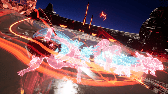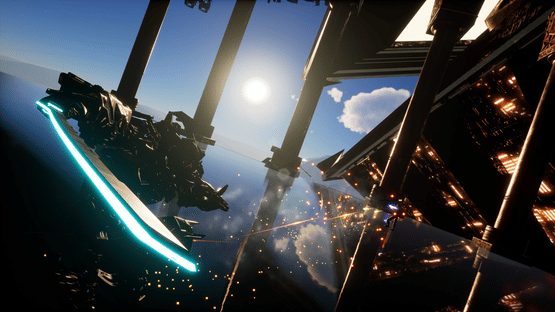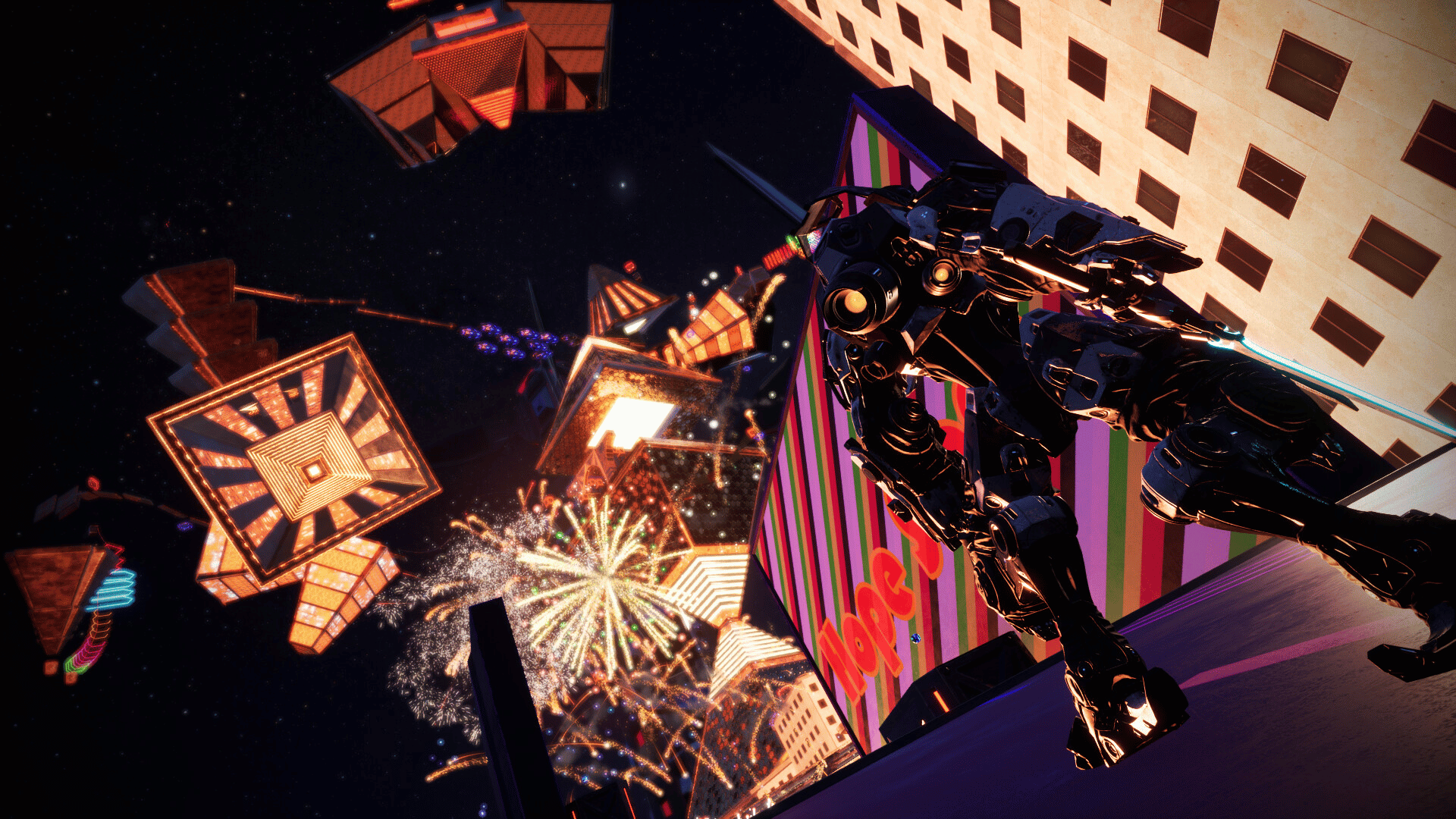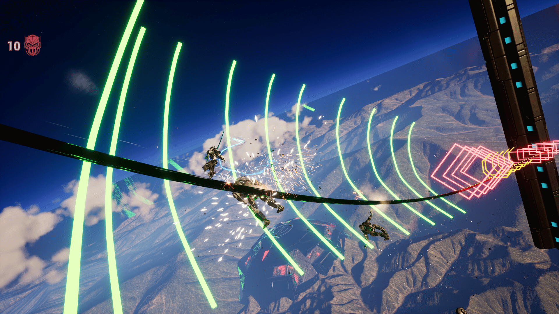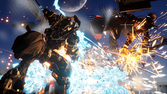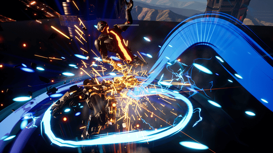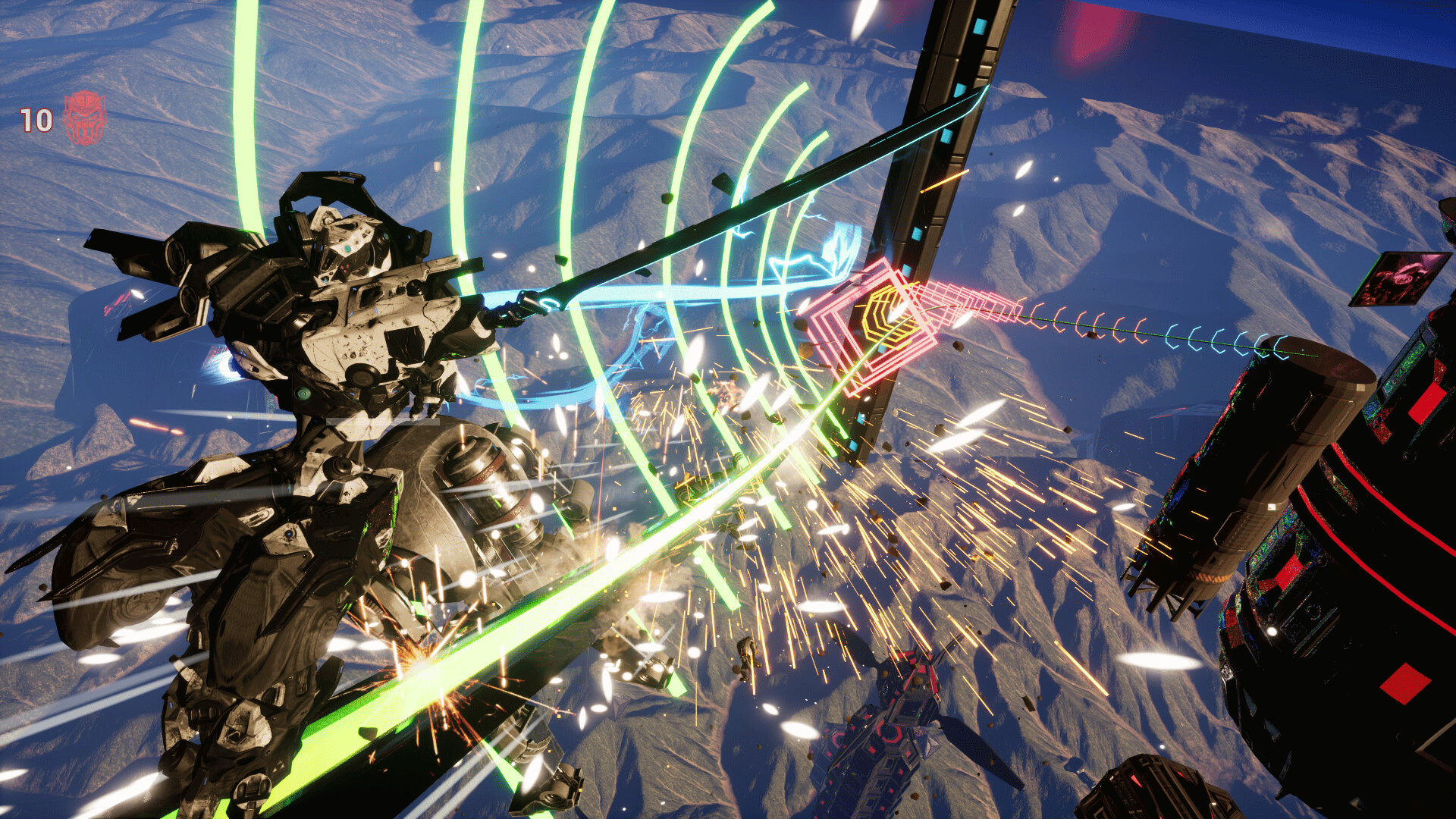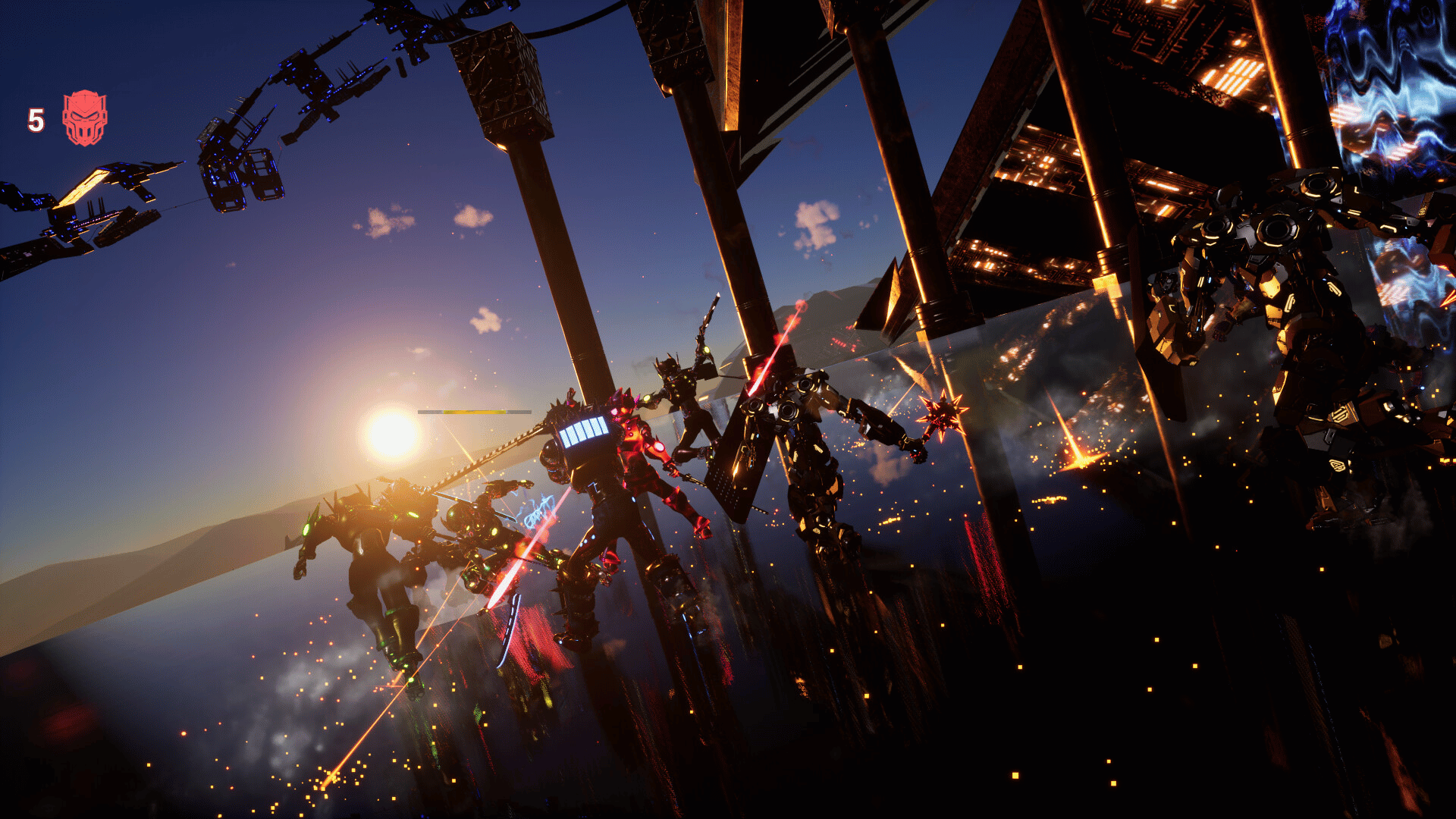 Katana Robo fights his way to the top floor of the Robot Tower, which looks like a platformer game stage, to thwart Samurai Robo's ambitious plan to use the Dominion Sphere at the top of the Robot Tower to control the robots throughout the universe.