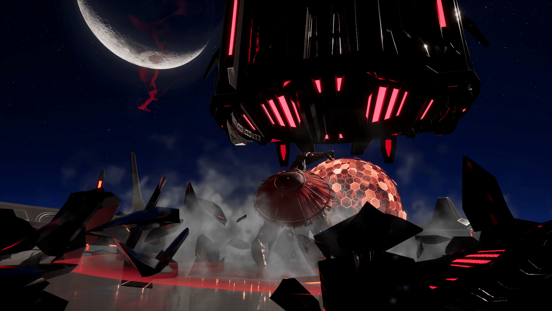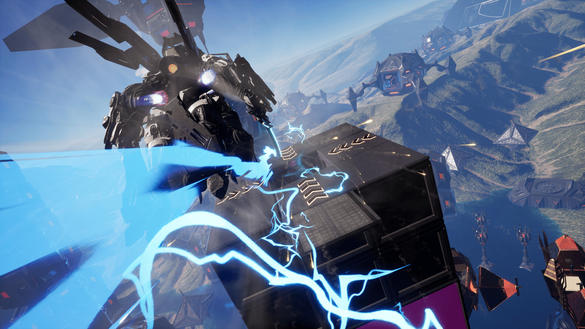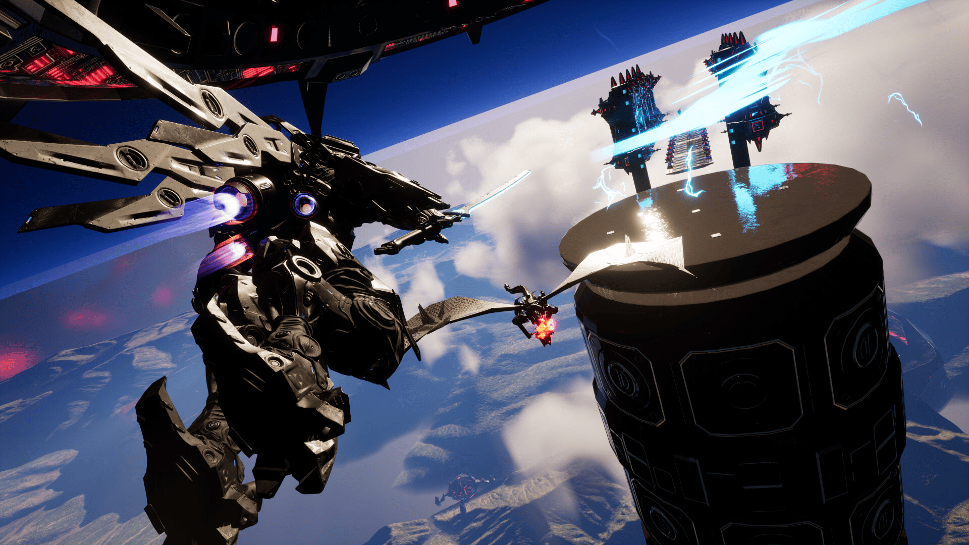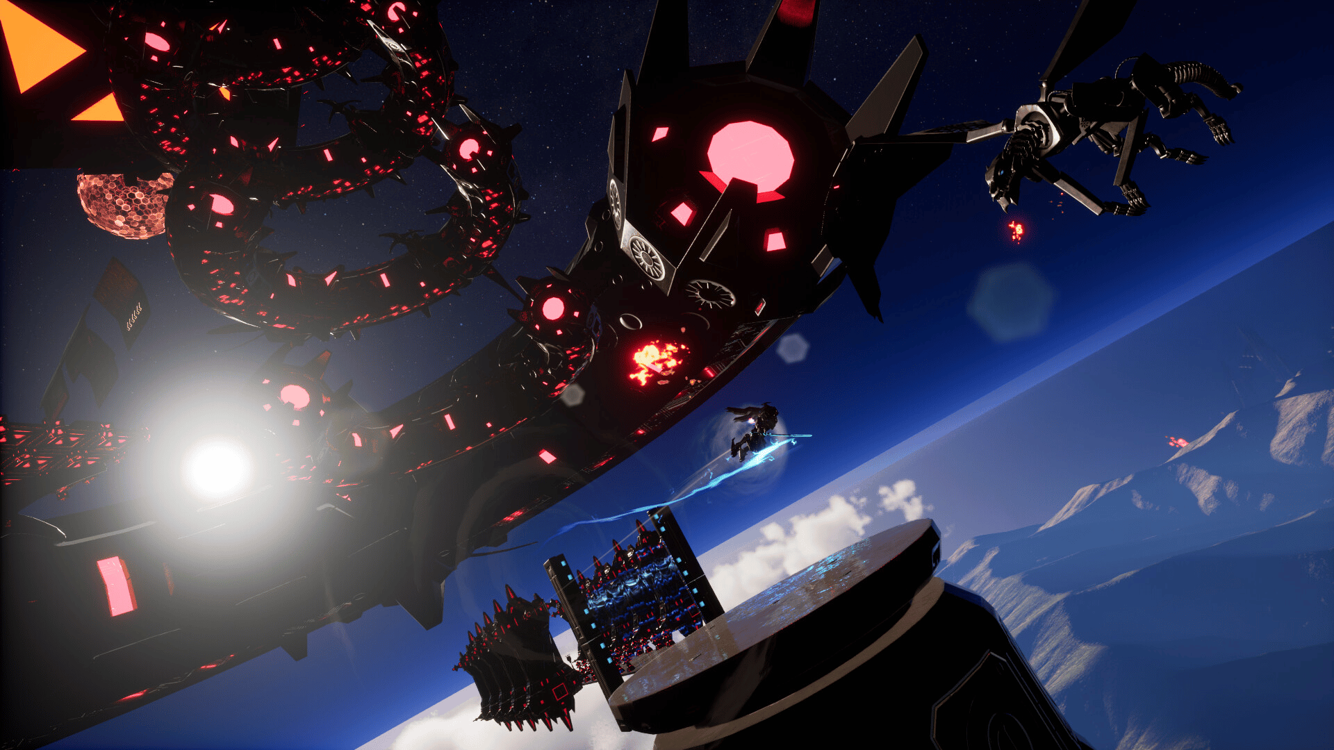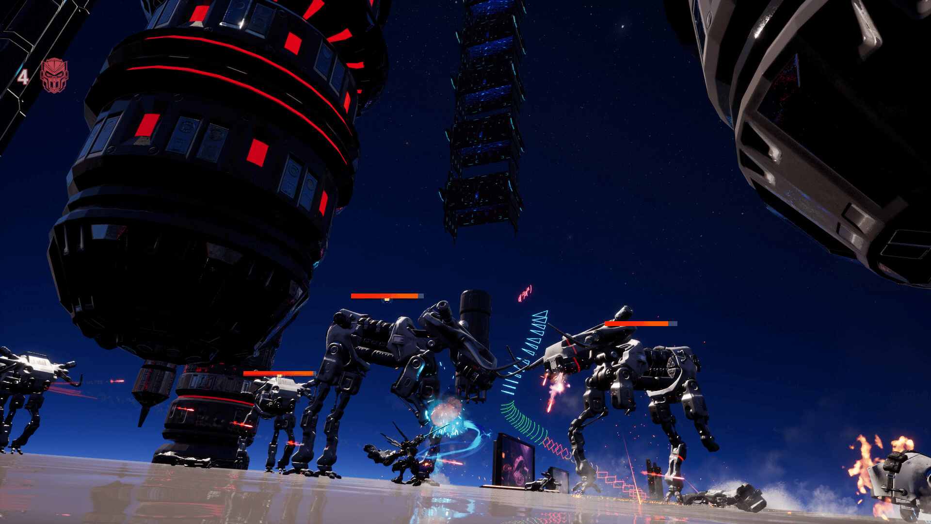 Katana Robo fights his way to the top floor of the Robot Tower, which looks like a platformer game stage, to thwart Samurai Robo's ambitious plan to use the Dominion Sphere at the top of the Robot Tower to control the robots throughout the universe.