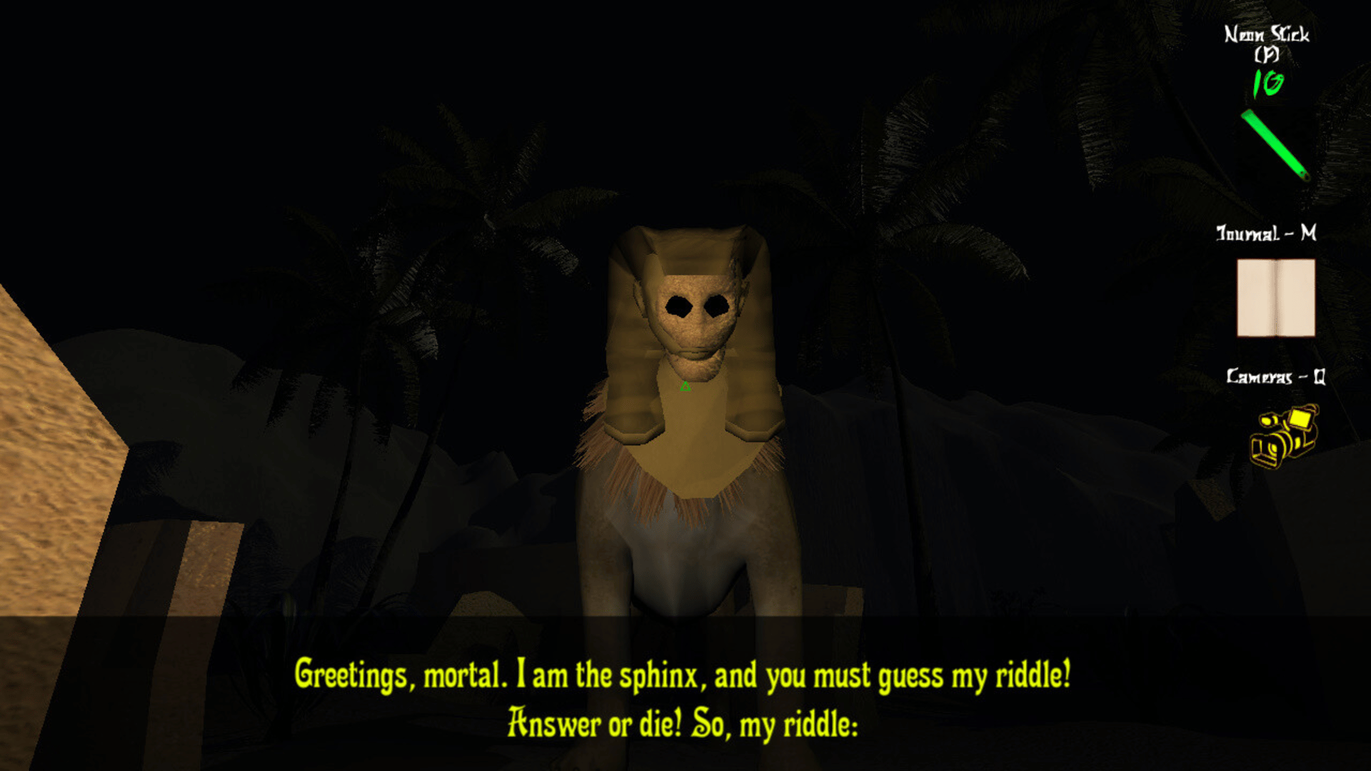 A first-person horror game about Egypt. Explore the scary secret of the mysterious pyramid. In order to protect the heroes from danger, the player can use the characters' cameras to see a ghostly entity and anomalies invisible to the human eye.