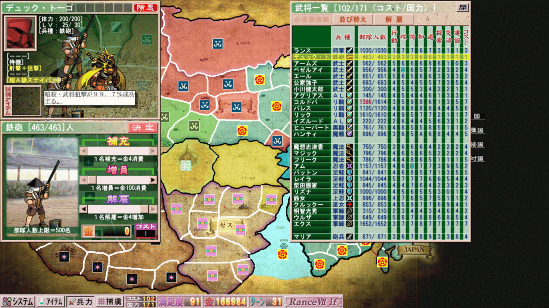 Japanese mod which expands the main story of Sengoku Rance, giving an option to 'continue' onto the main continent after uniting JAPAN.
