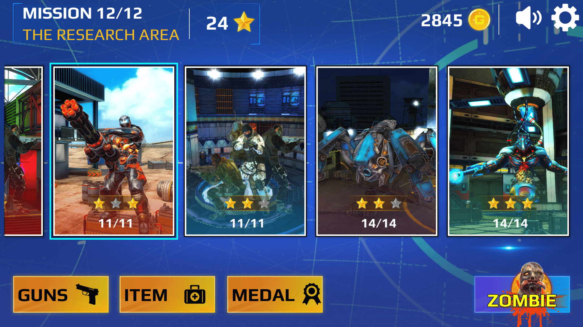 With a completely new and simple hide and shoot gameplay, it will help players have a good Action experience without having to get tired from moving too much. Players will go through 16 campaigns in 16 different locations to confront enemies, bosses and zombies.