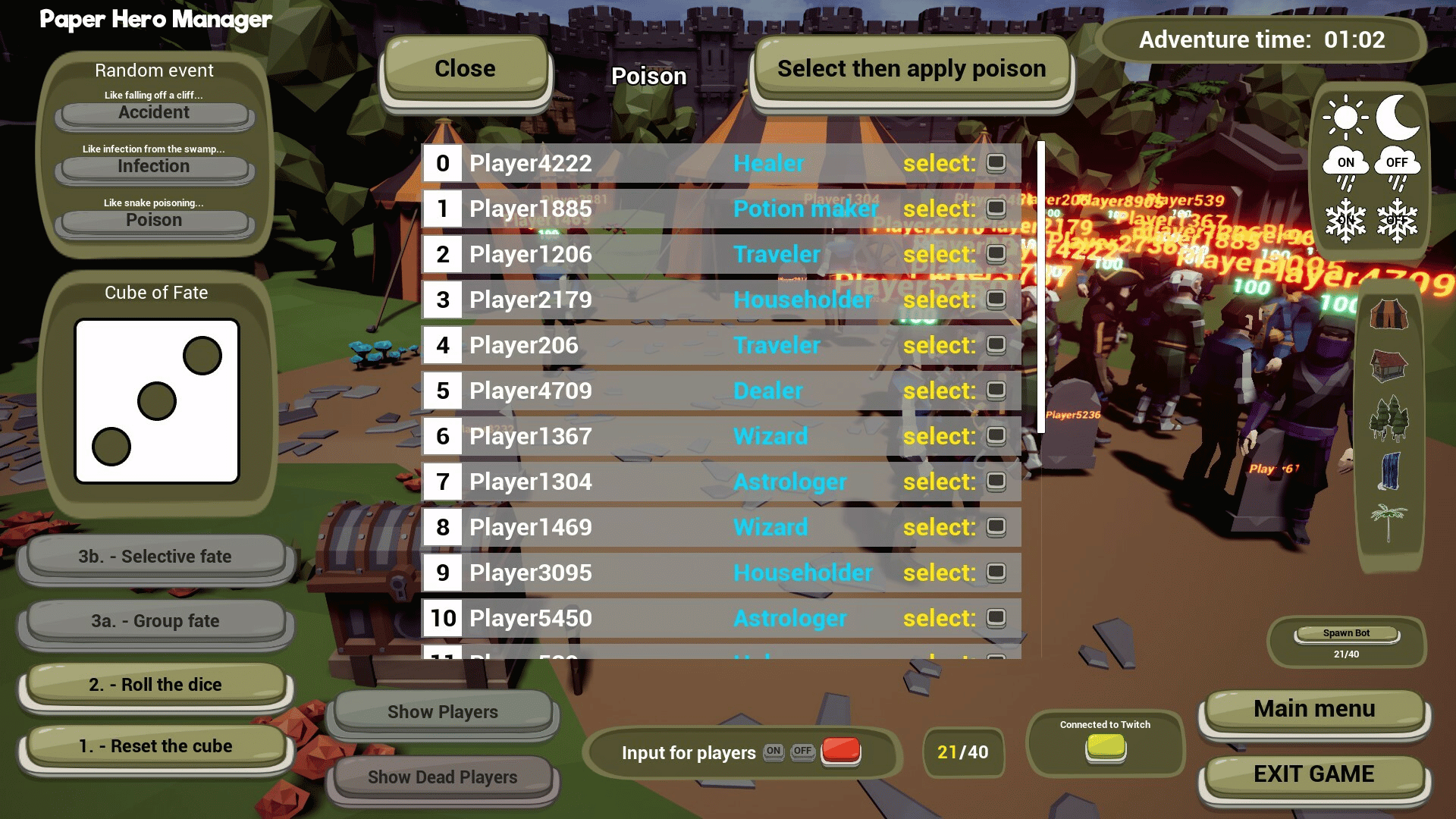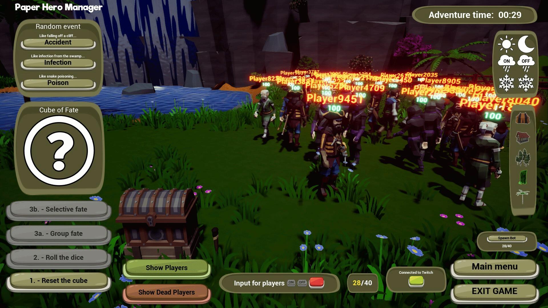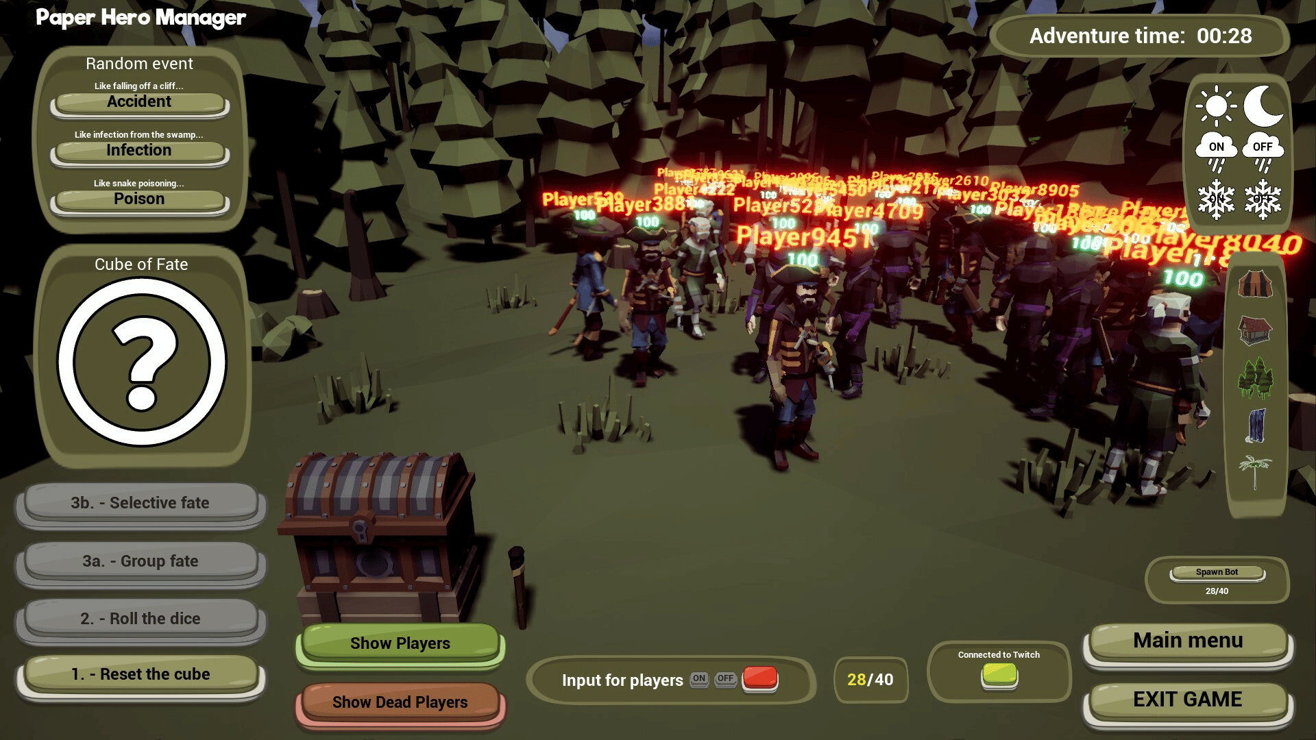 This is game for streamers with Twitch integration, its "Graphic support for a read adventure"