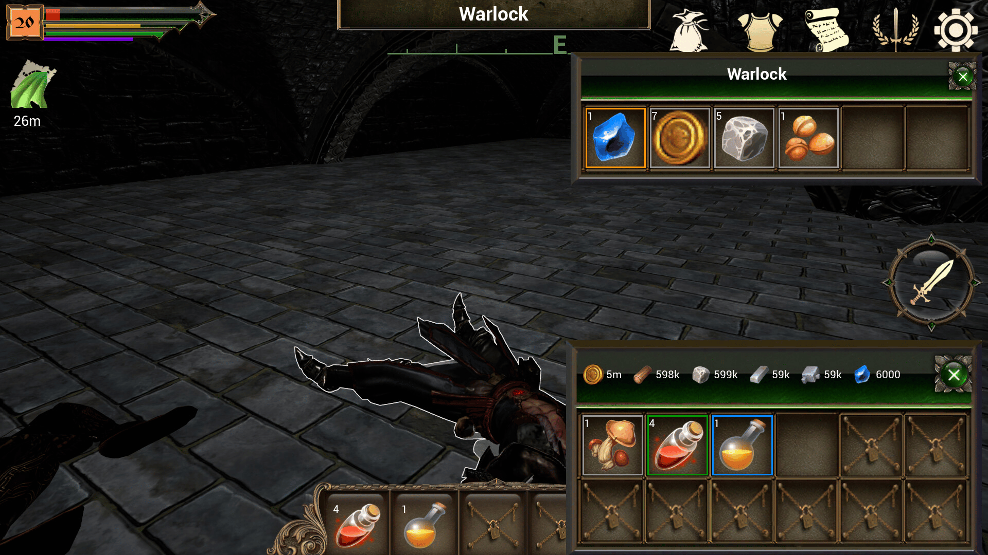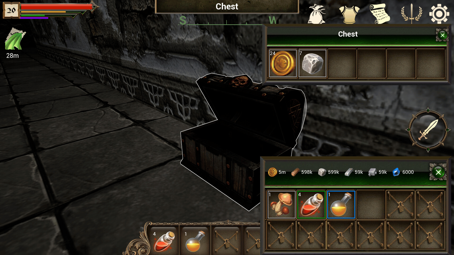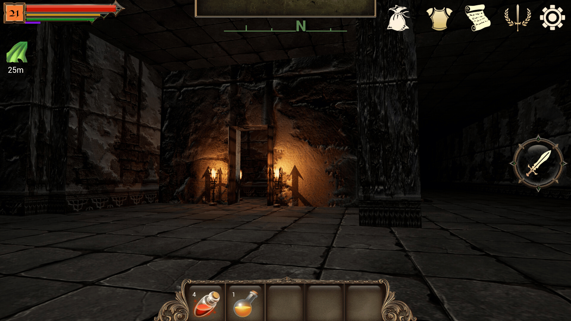 Procedural generated Labyrinth from 10x10 to 50x50 cells with monsters chests and traps. Skills development. Inventory and craft. Mechanism of character hunger/satiety. Collecting very rare Trophies. Easy mode without death. Pets that may be tamed and will help you in the Labyrinth.