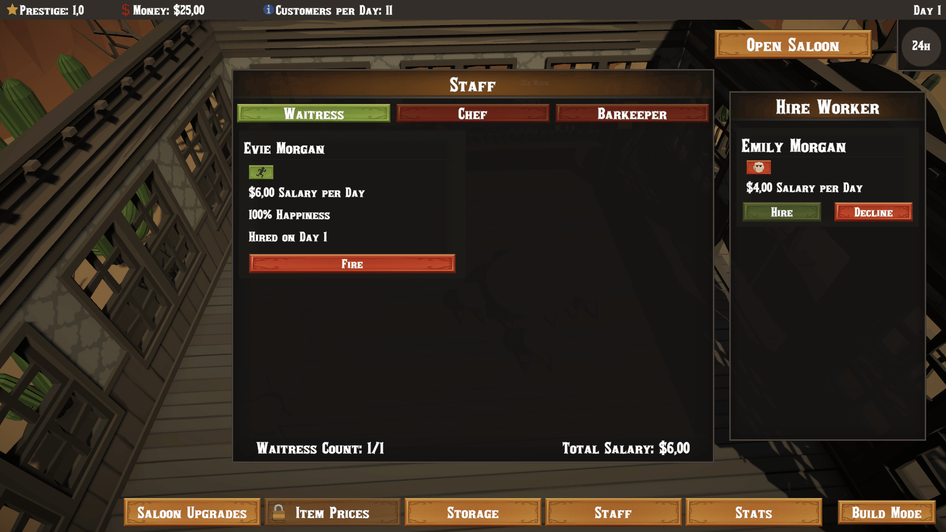 Howdy partner! In Wild West Saloon you manage and maintain your own saloon. Serve drinks, cook food, clean tables and most importantly keep your customers happy.