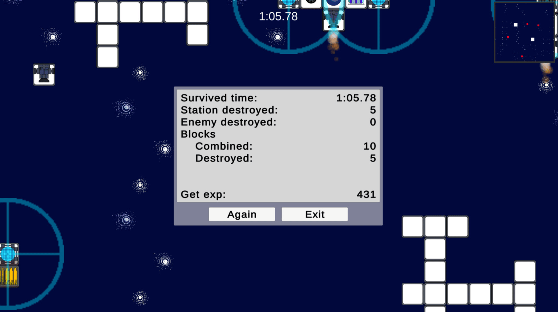 Player move ship and dock with blocks. This docking will be on contacted position, so your ship can be ugly shap. But if your control was good at moving ship, your ship will be cool. Try this trip and survive. And if you can, try making cool shape ship.