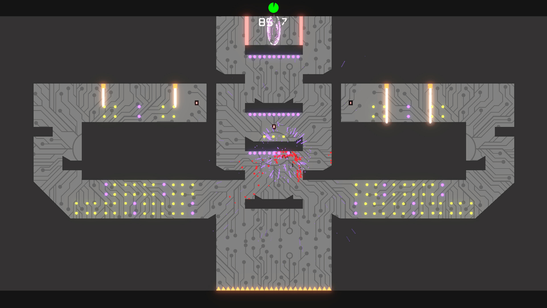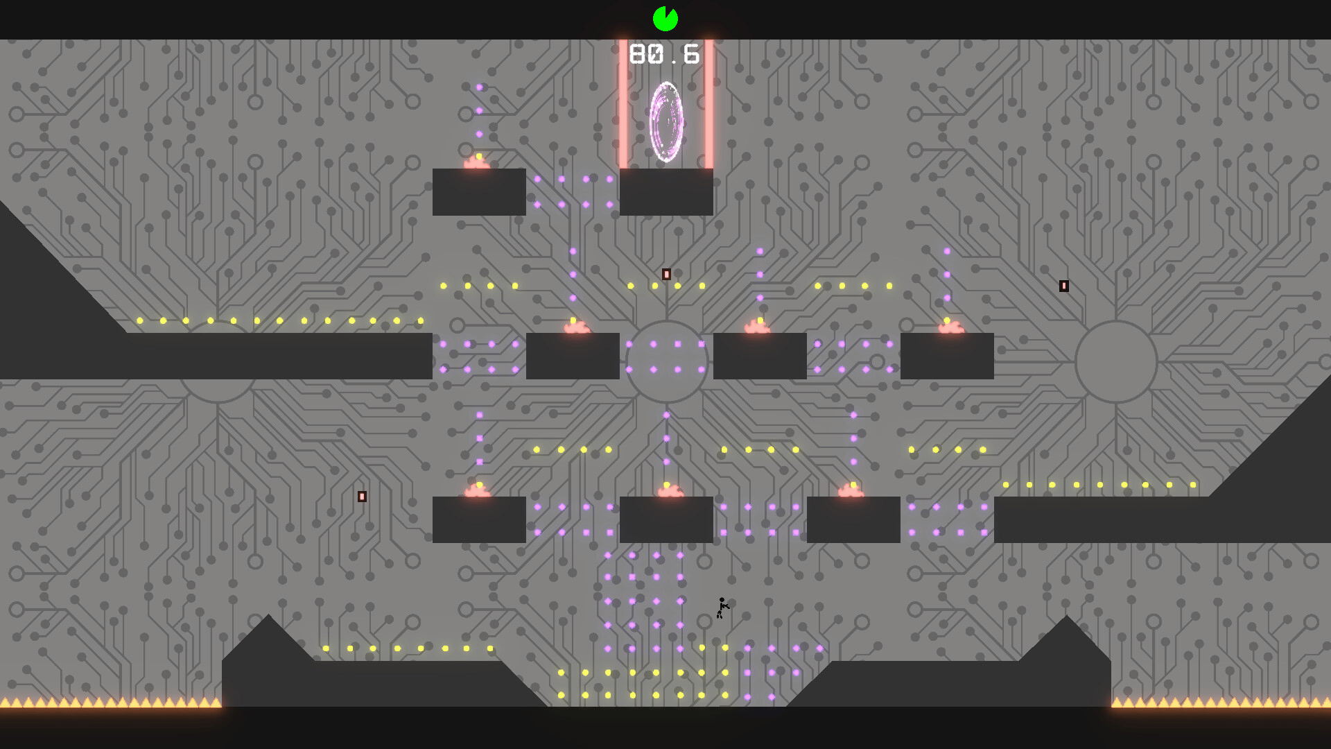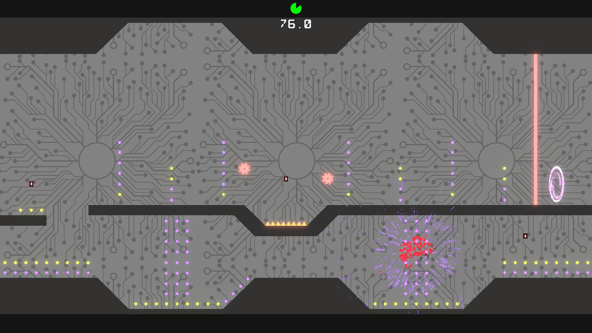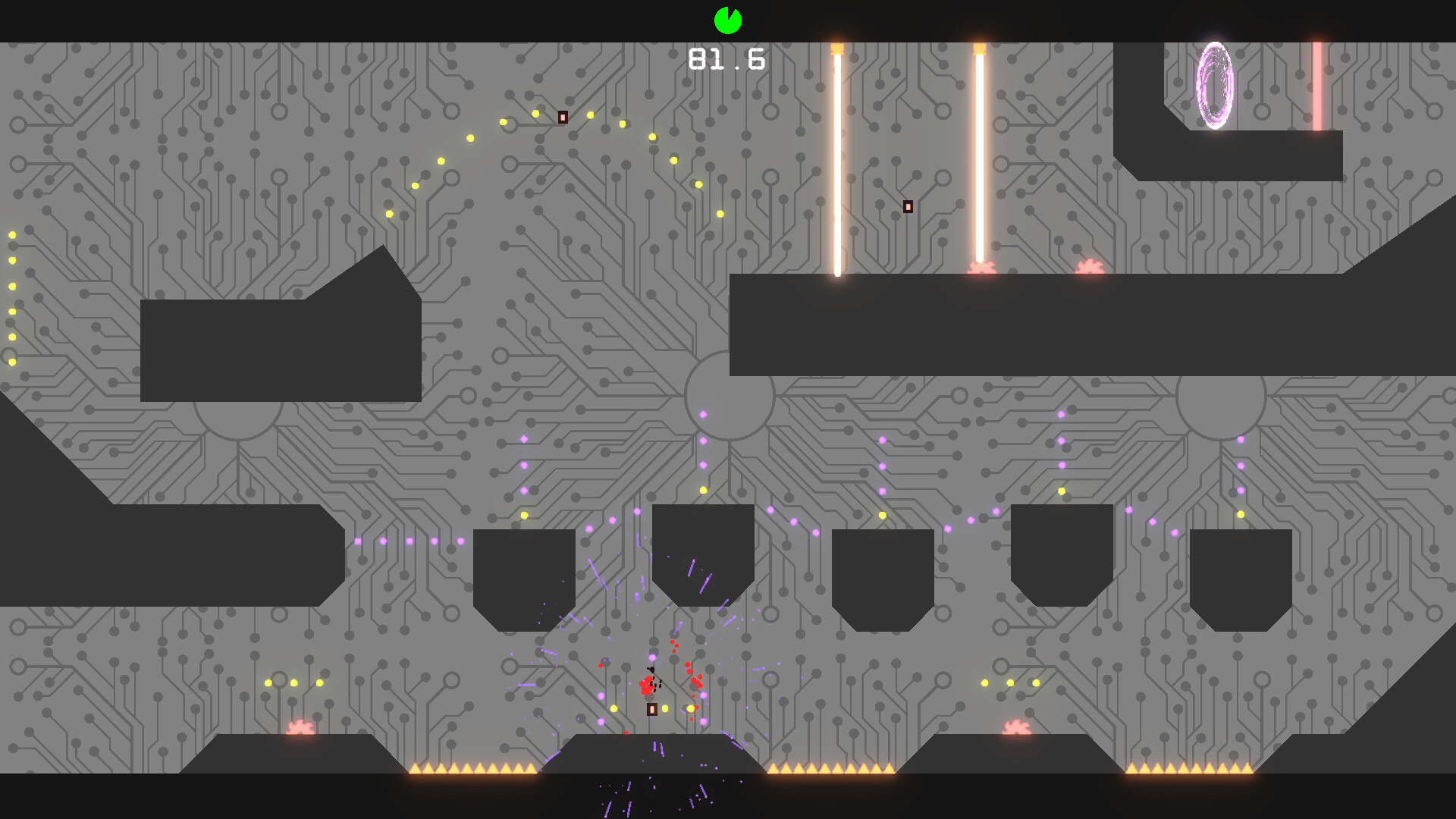 In this modern twist on 2D platformers, make your way through numerous traps and obstacles such as spikes, saws, laser beams, and explosives to reach the goal at the end of each level. Each level has a limited amount of time to complete. So speed is key, or else it's game over.