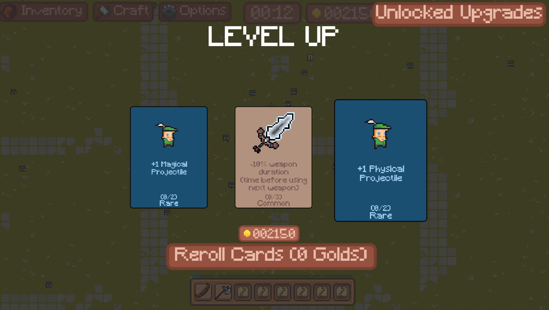 Whether you choose magic, swords, or both, make your way through the thousands of monsters attacking you! DunJumb is a colorful 2D medievial survivor game with roguelite elements, in which you create, buy and reinforce a combination of weapons against formidable enemies!