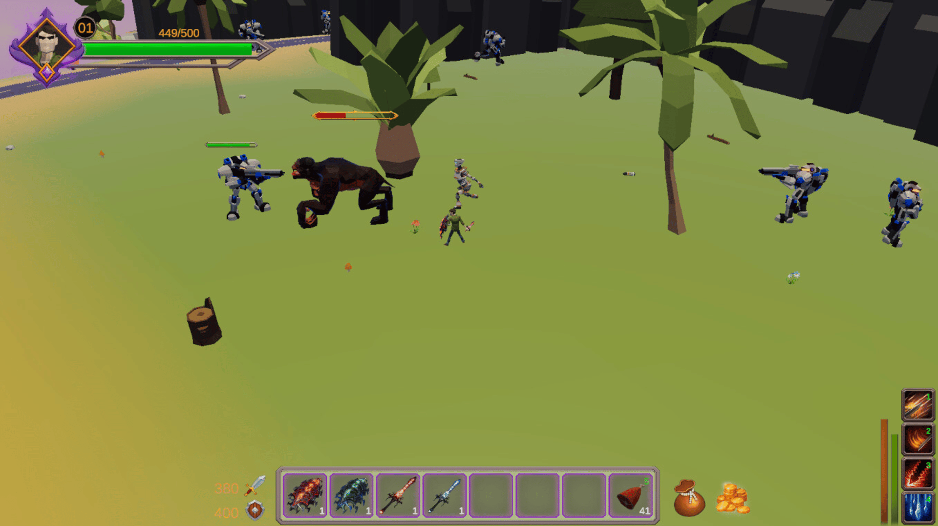 This is a single player game, in this multi-sided planet, humans in order to survive the attack of mutants, built a tall wall, this is the last city of mankind; Players need to control the character to pick up a sword and shield, to kill mutants, get them to drop food and weapons to arm themselves.