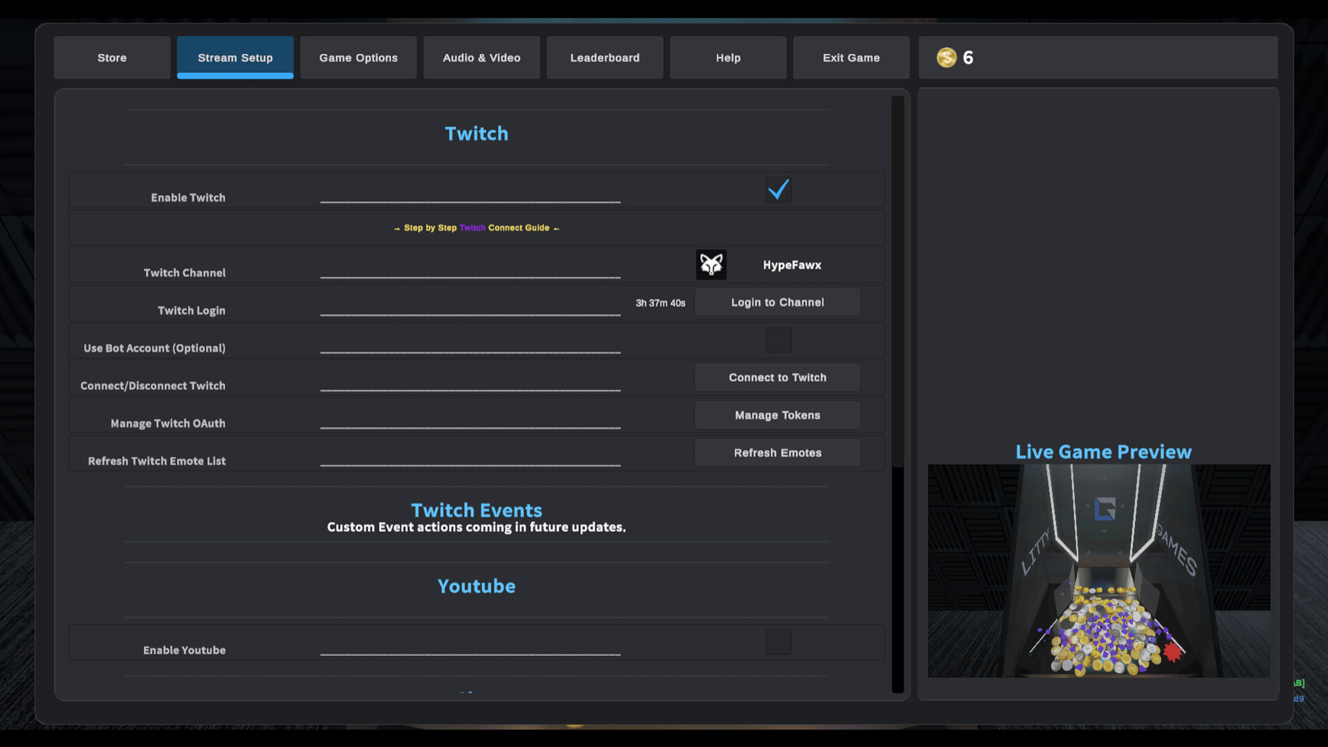Rigged? Maybe. Fun? Absolutely. Engage, enrage, and let your chat flood the machine with coins using !drop. The more they play, the more you win. Turn your Twitch & YouTube streams into a live arcade where skill is a myth and the house always wins…probably. Add Coin Pusher Live to your stream today!