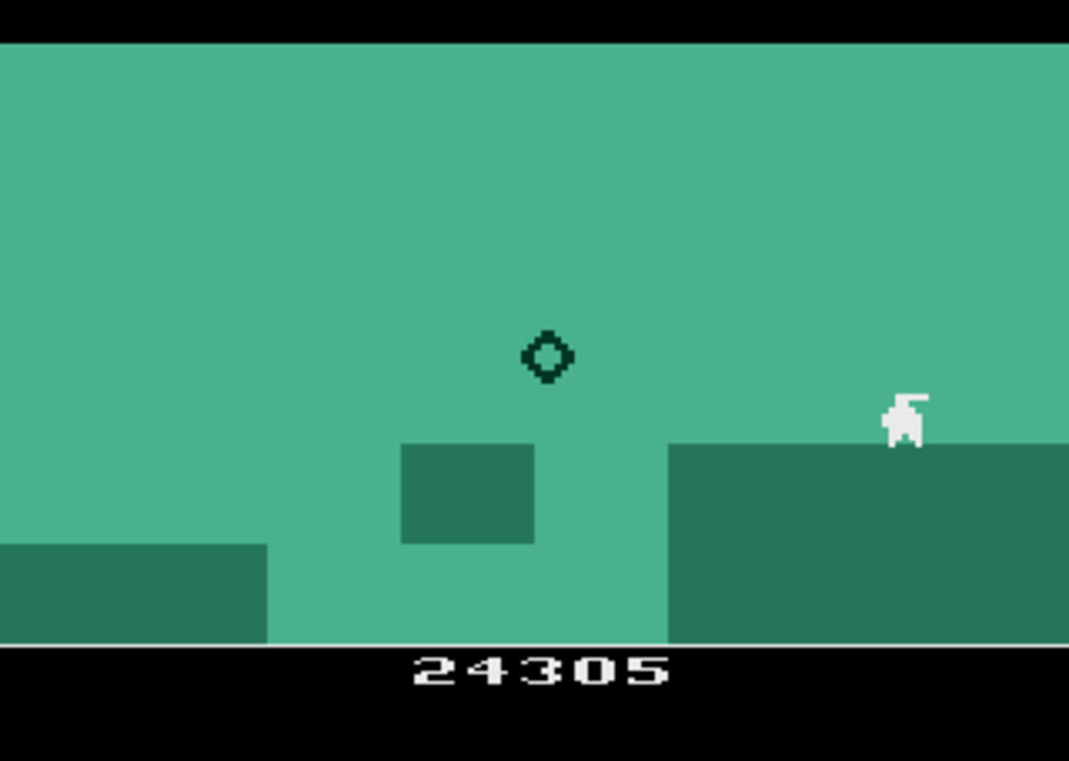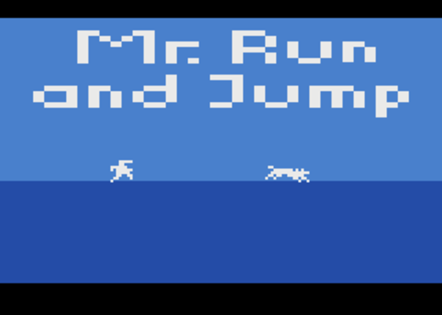 The Atari 2600 version of Mr. Run and Jump originally began as a homebrew project by programmer John Mikula at Graphite Lab before being developed into the modern version. It is a simplified but significantly more challenging game that contains 7 color-coded levels (blue, green, yellow, purple, red, white, and black with invisible platforms), each consisting of single-screen left-to-right maps connected by ladders. Controls are simplified compared to the modern version, with just joystick movement and a single jump button. Checkpoints only appear at the start of each level, making completion much more difficult than the modern version.