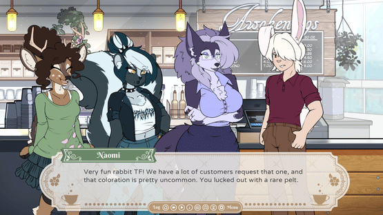 Coffee Buns is an 18+ Transformation Visual Novel set after the events of Mice Tea. It's been two years since since the worldwide release of Kemono Tea, which turns the people who drink it into anthropomorphic animals. Society is still adjusting to the idea of real-life furries, but that doesn't mean you can skip your day-job. Leonardo Bianco is a barista at a struggling café. His boss feels like hopping on the furry train might be just the thing to attract customers to the floundering business. Via a connection at another local business (which some returning readers might recognize), Leo and his co-workers are offered a chance to try transforming themselves. The tea works as advertised, but for Leo, there's more changes he didn't anticipate.