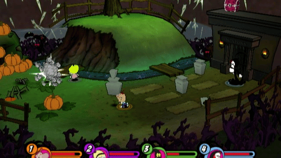 The Grim Adventures of Billy & Mandy pits the characters from the popular Cartoon Network television show against each other in an adventure/fighting game, filled with mayhem and chaos. In Battle Mode, players can use a multitude of weapons in destructible arenas like the Desert of Doom and the Underworld. Players also have the option to play on their own or with a friend in Adventure Mode, a series of story-based missions where players can unlock new weapons and new playable characters.