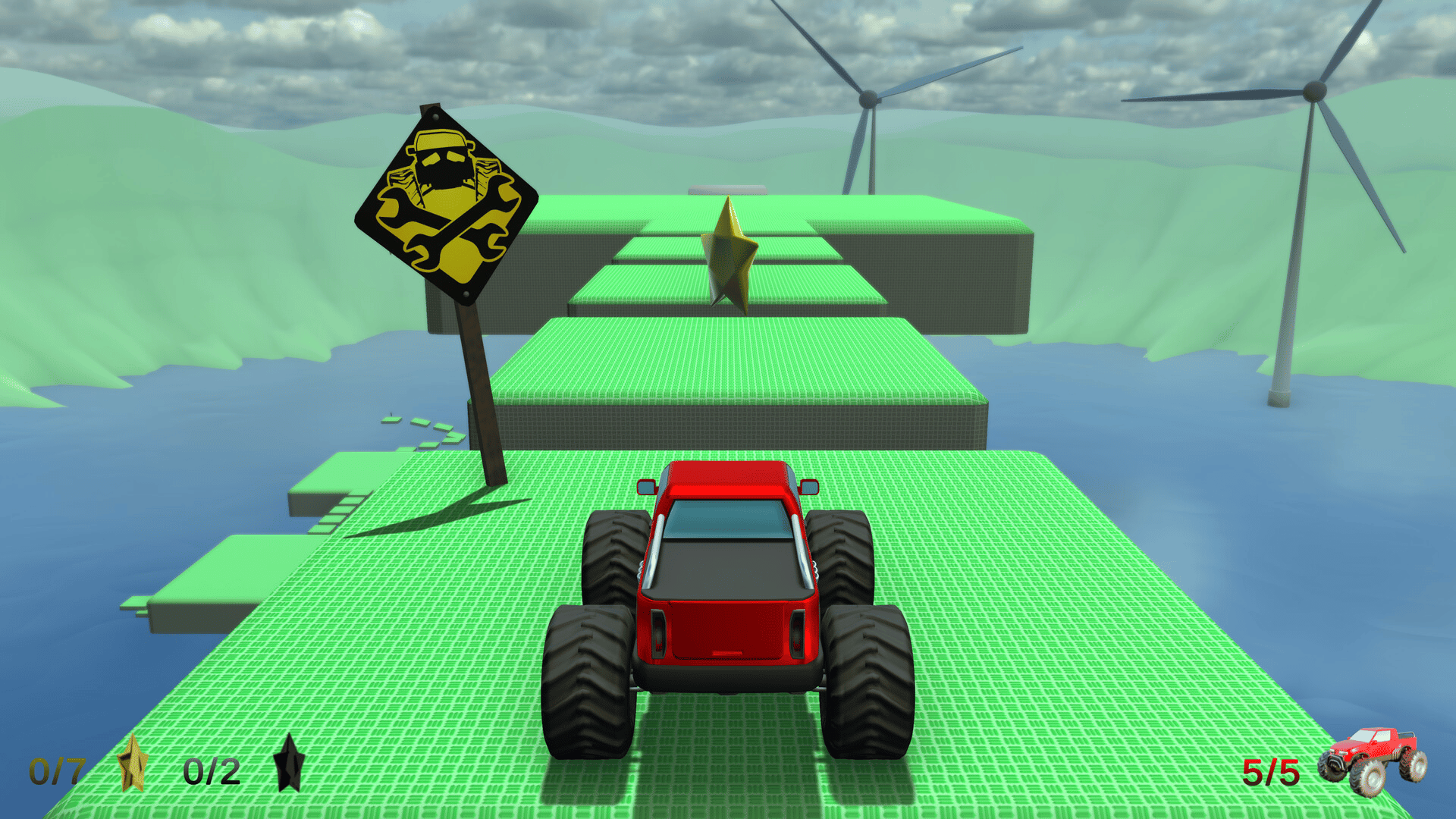 Danger Ramps is a 3D platformer driving game. Master the control of your vehicle to advance through colorful environments, collecting stars without flipping over or falling into abysses.