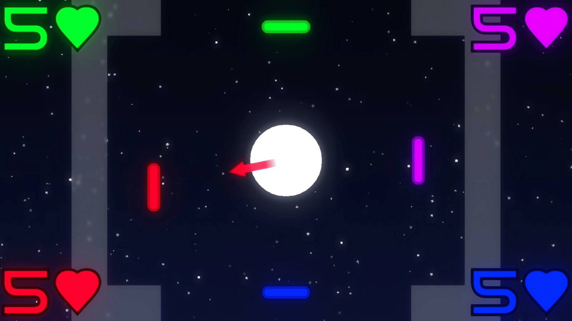 A competitive paddle and ball game, with a twist! As you hit the ball around the arena, the camera follows it. Spin the ball to disorient your friends and win the match, but take care not to lose track of which way is up yourself...