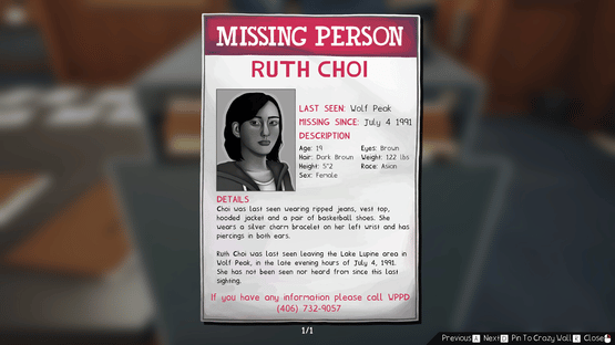 In 1991 Ruth Choi was murdered and it was whittled down to 6 suspects, but the case was never solved. Watch interviews, go through evidence and build your case. A game where you are never told outright who the killer is. Use your own deductive skills to find out, who killed Ruth Choi.