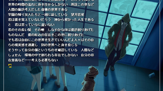 High school at Shinjuku, Tokyo, but in imaginary world created by human brain. Fates of 18 people are intertwined there. A girl is in love with a boy, but he only plays with her heart. One day illusion of the girl appears at school, and rumors about her suicide start to spread. At the same time Ryusei creates "Misuzu" and tries to infest people's minds with "Misuzu" through the internet.