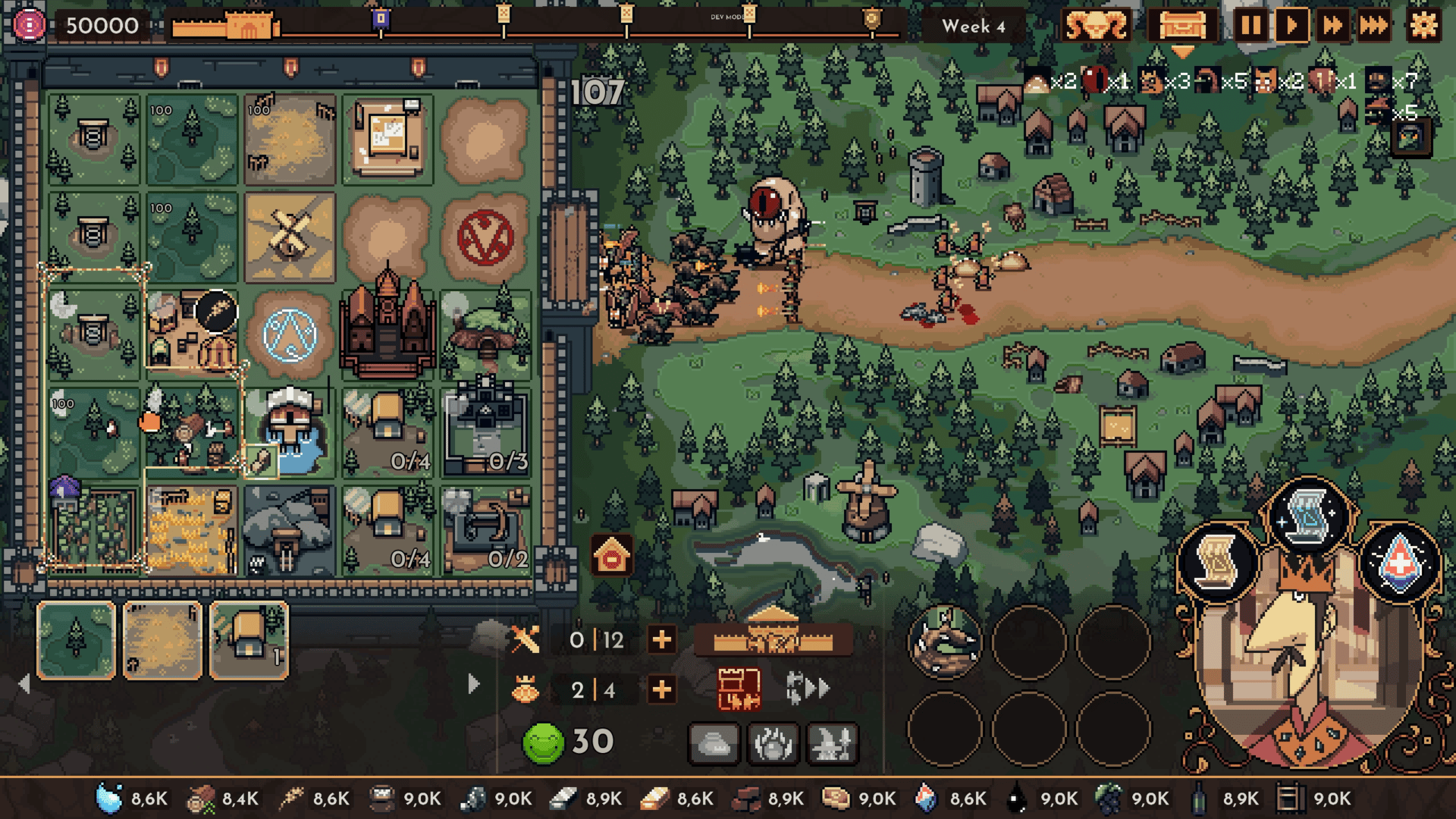 The King is Watching is a roguelite kingdom builder. Rule by the power of your royal gaze! Decide between producing resources, training armies, or balancing both, while adapting to unique events every run.