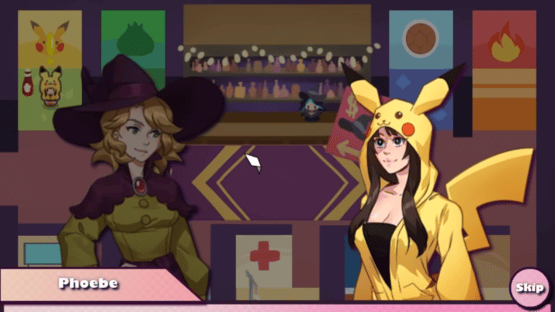 A raunchy comedy RPG, set in a convention centre where a witch has possessed cosplayers dressed as various Pokémon characters. You must take on quests to fight each possessed girl to purify them, gaining EXP and currency in the process, allowing you to get new upgrades, items and sex scenes.