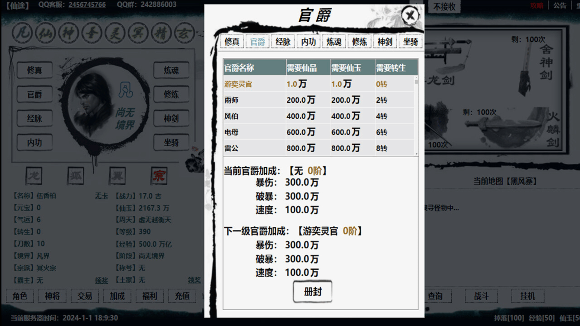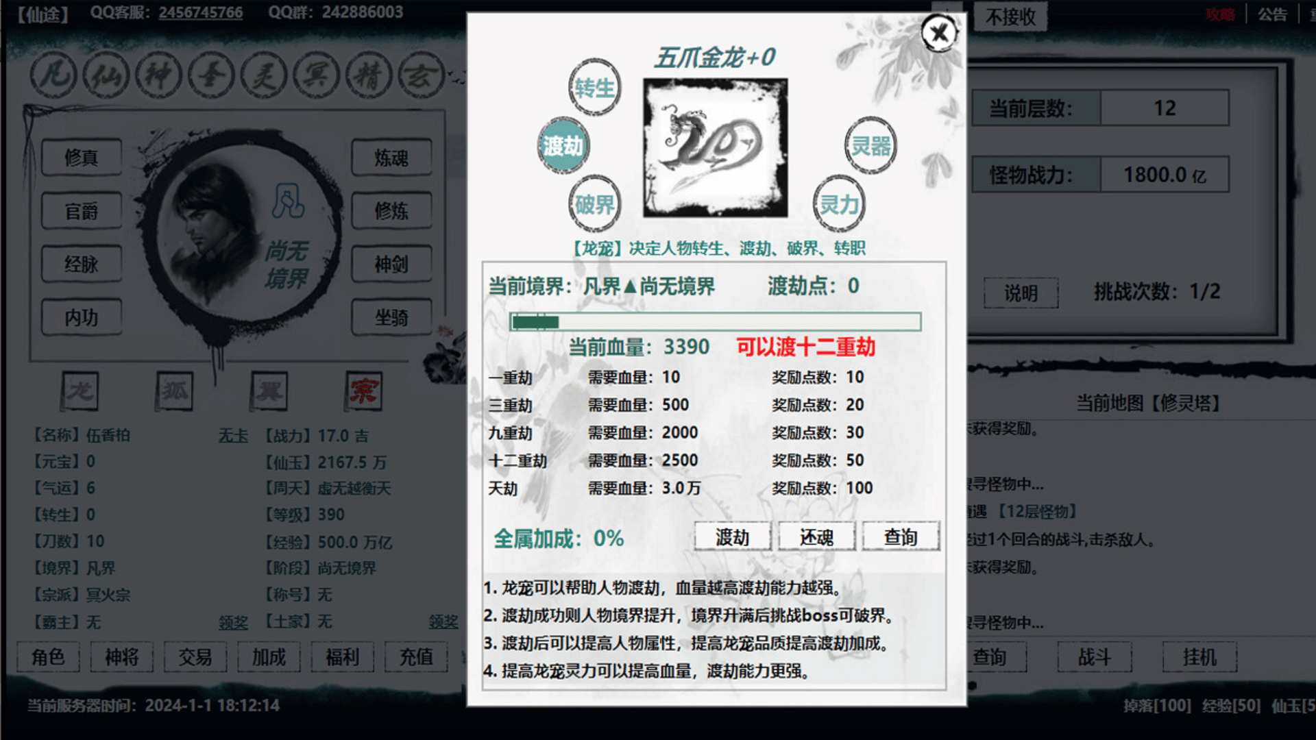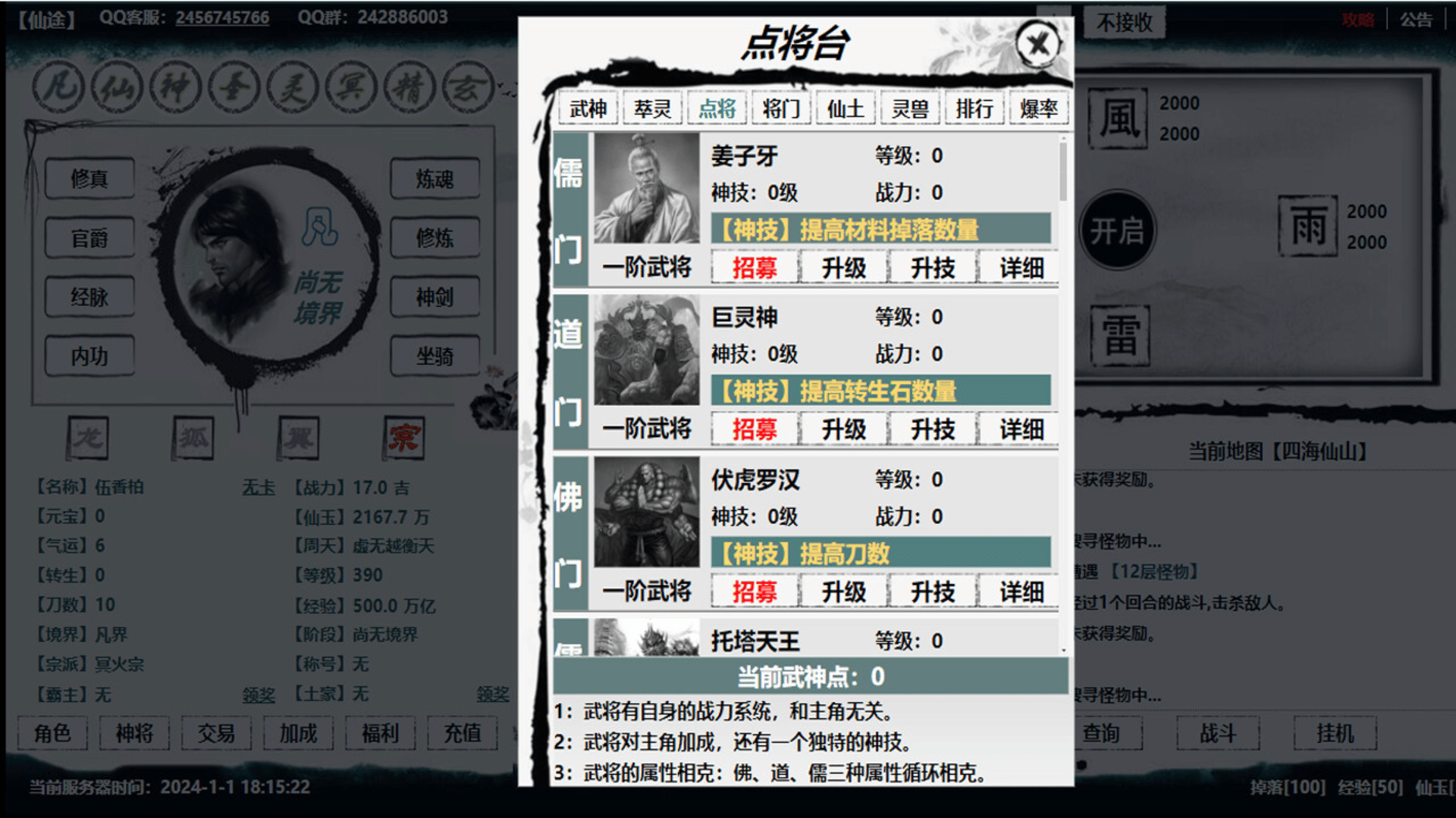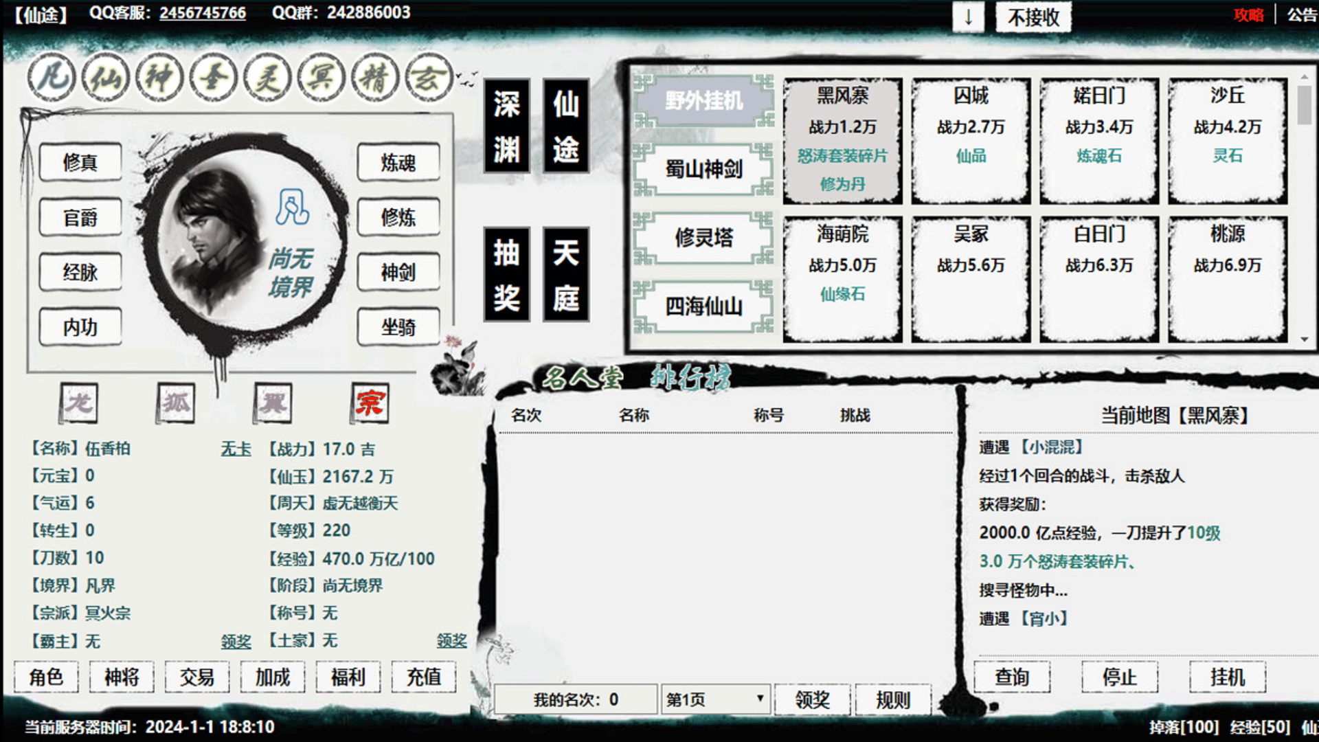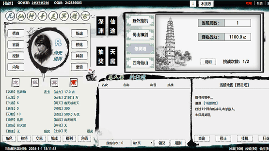 A text placement game with a cultivation theme, featuring 64 cultivation systems, 24 independent dungeons, multiple interactive modes, and various combat economy modes.