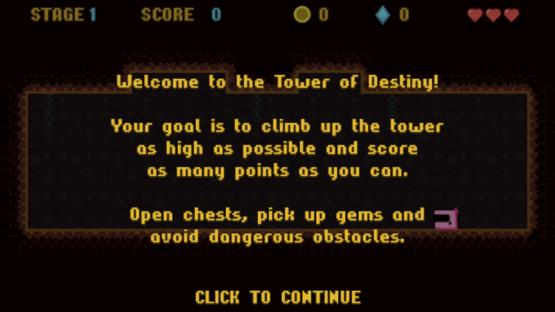 Dodge spinning blades, jump over lava, and avoid dangerous monsters as you fulfill your destiny and collect all the treasure in the tower.