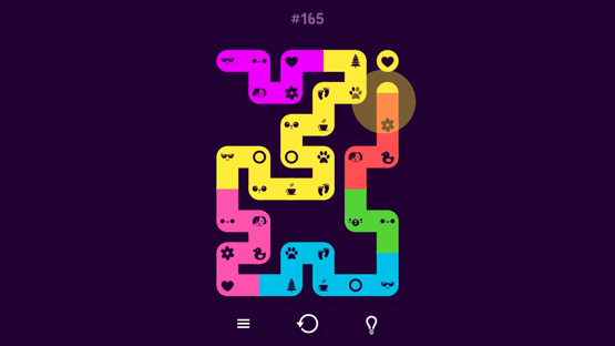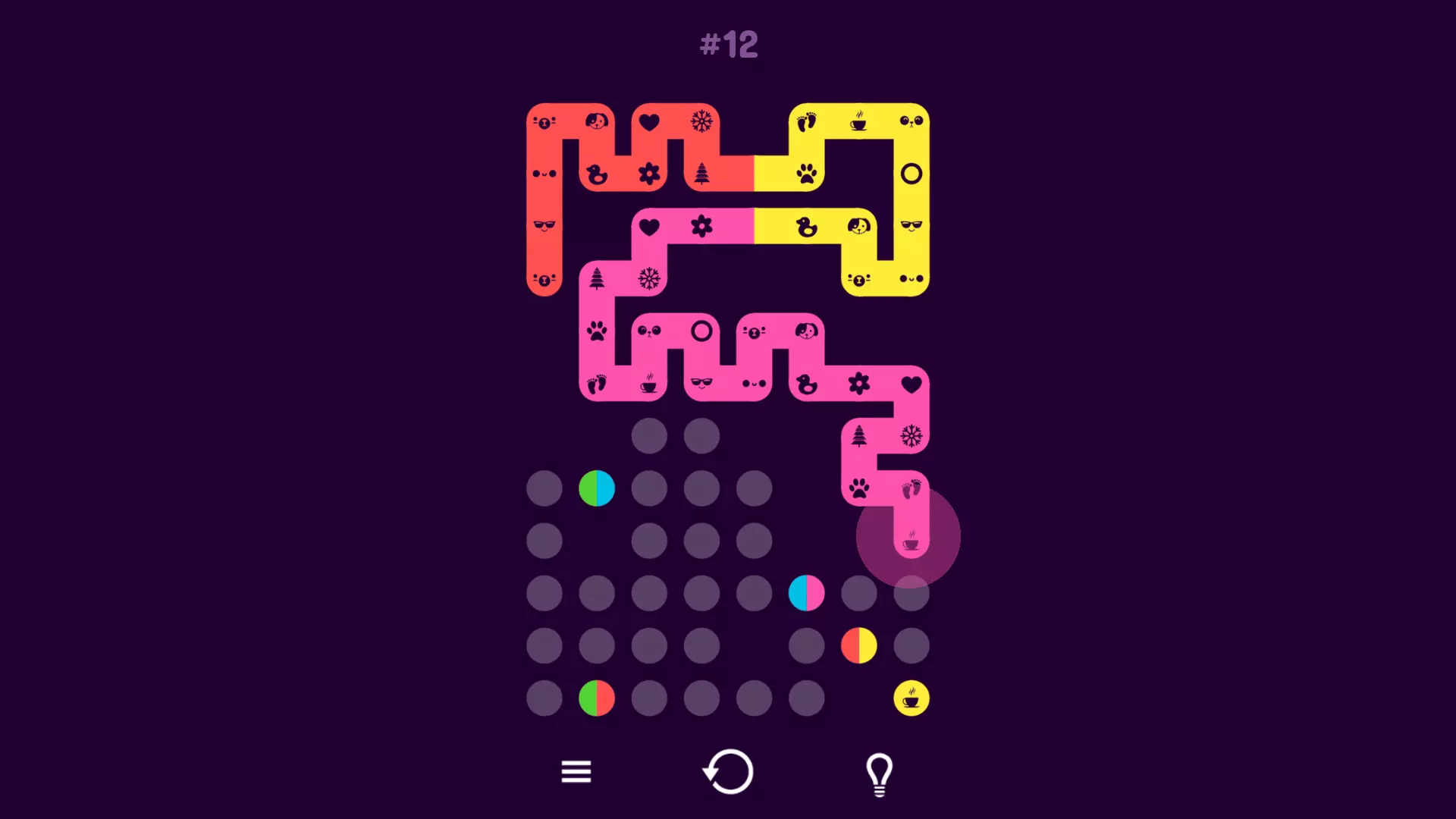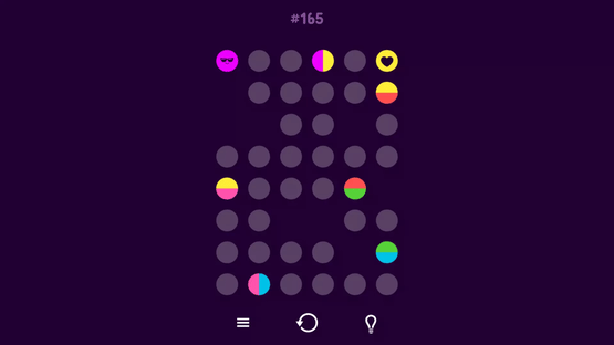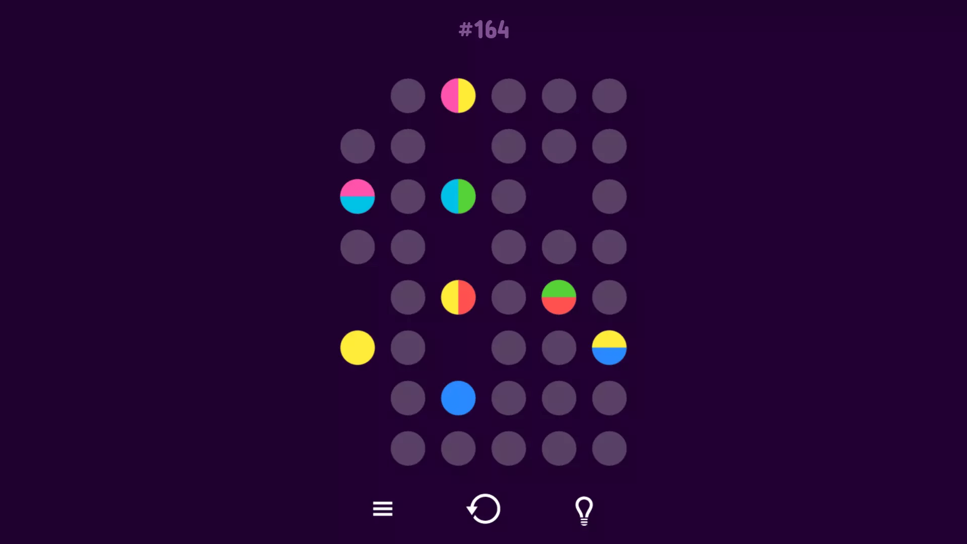 You are presented with a grid of dots and you must connect all the dots, but there are two-color dots that require certain rules in order to be connected. Dots cannot be connected twice. You must connect all the dots.