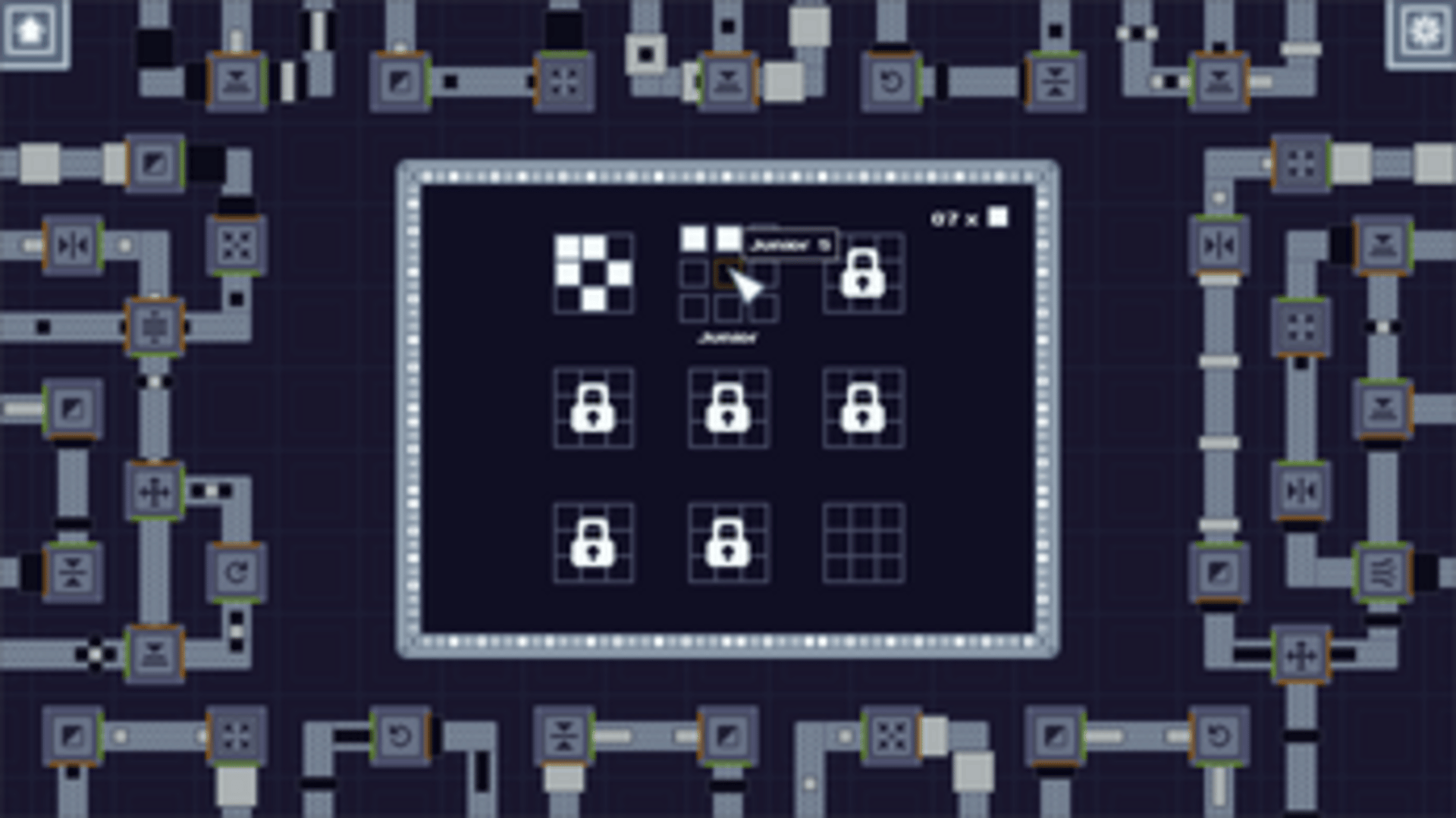 Block shop is an automation puzzle game in which basic blocks are transformed and combined to create increasingly complex blocks.