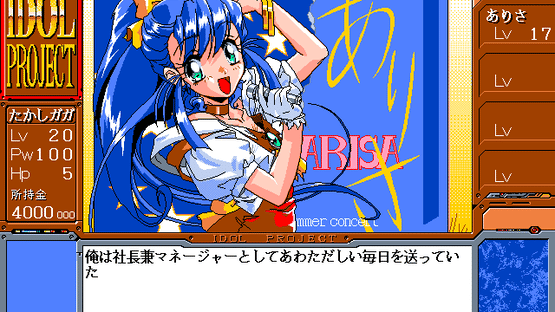 In Idol Project, the player takes a role of a young man named Takashi, who works for a company called Mobius, an agency whose goal is to turn young Japanese girls into famous singers.