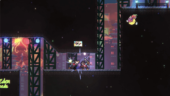 Atomic Owl is a pixel art-based single-player, side-scrolling roguelite that combines fast-paced platforming with dynamic hack-and-slash combat and a variety of weapons, powerups, and a demonic blade. Journey through eight roguelite zones, save your friends, and take up arms against Omega Wing!