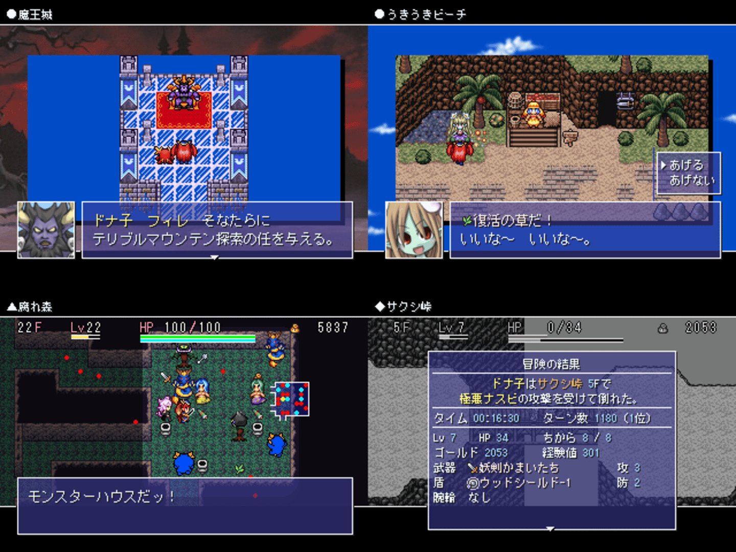 Meikyuu Ryuuki is an roguelike game. This was first shown as a submission in VIPRPG 2023 Kouhaku. The original language of the game is Japanese, but volunteers have created an English patch that you can download and use on the official page. This is a Mysterious Dungeon type and includes homages to several works.