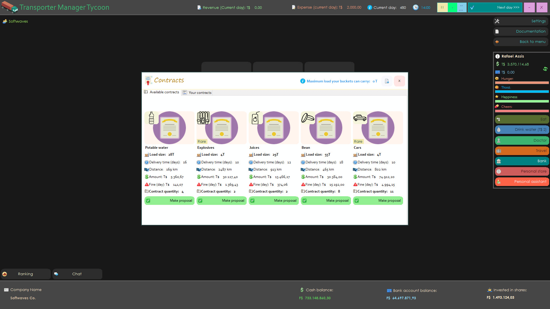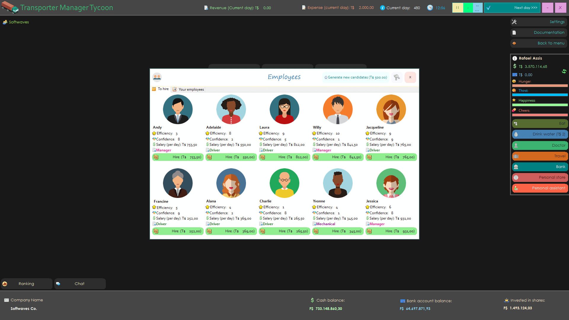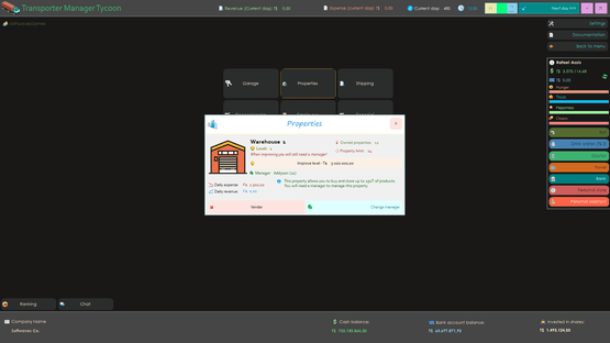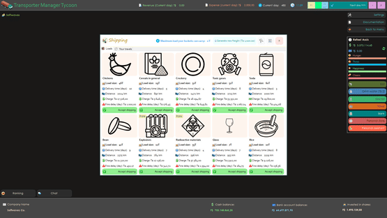 In Transporter Manager Tycoon you will control your own carrier, you will manage freight, buy new trucks and even expand your carrier to a distributor. Start small, and with a lot of dedication and effort become one of the biggest carriers in the game.